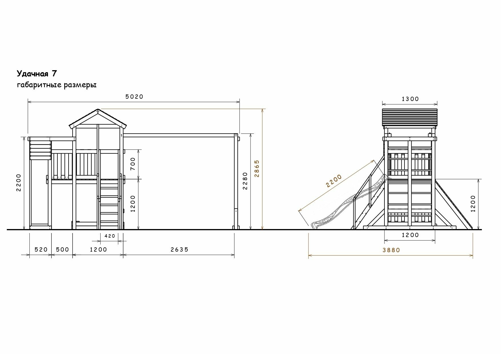Детская площадка легенда леса удачная 2 Золотой Тик-Орех с лазелкой и горкой 2,2м для улицы окрашенная / Игровой комплекс для дачи