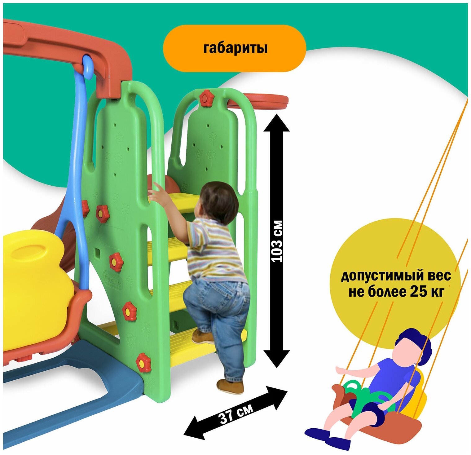 Купить Детский игровой комплекс Happy Box JM-701Е (Южная Корея) для дома и улицы: детская горка-волна, баскетбольное кольцо с мячом, детские качели