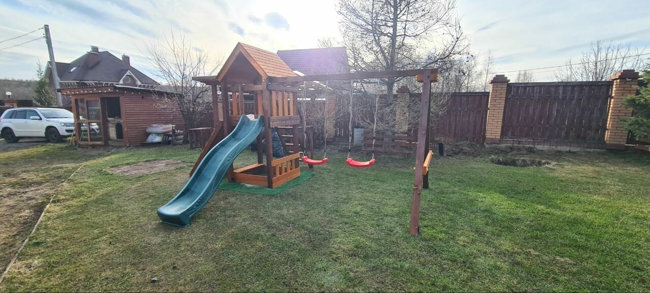 | В комплекте | брусья, домик, канат, качели, лестница, песочница, скалолазная стенка, Волнистая горка, Игровая веранда, Игровой модуль, Крыша, Перила |