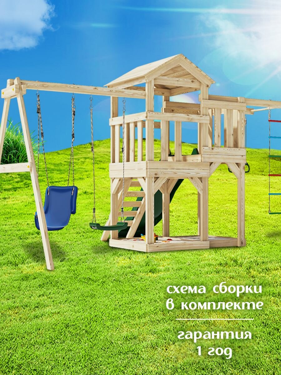 Детская площадка легенда леса стандарт 1 с качелями и горкой 1,75м для улицы / Игровой комплекс детский