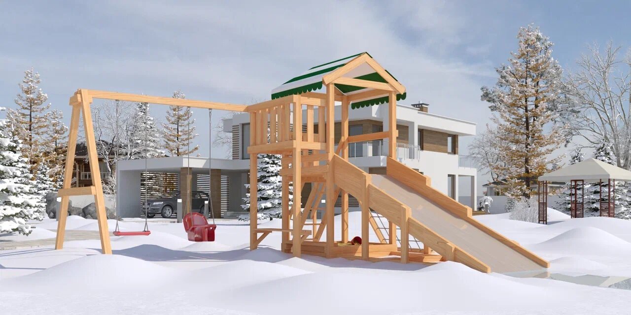 Зимняя горка деревянная для детской площадки Мастер 01-05 2,9 метра без окрашивания интересное: