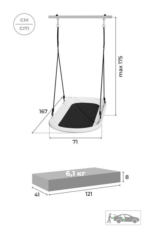 | Особенности конструкции | сиденье качелей со спинкой |