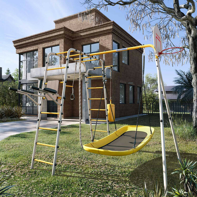 | Комплектация | баскетбольный щит, груша боксерская, брусья, канат, кольца с перекладиной, гимнастическая лестница, рукоход, турник подвижный, качели цепные |