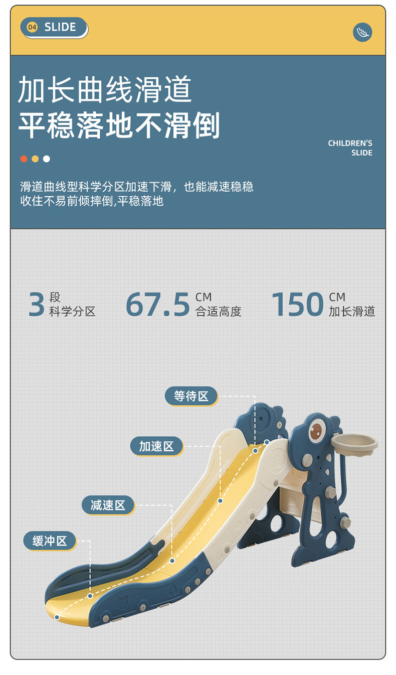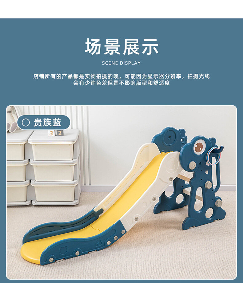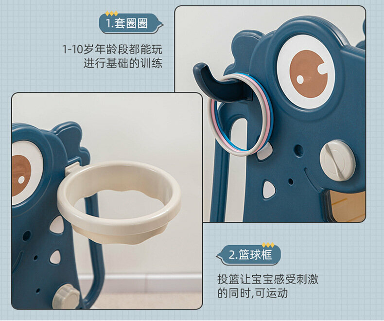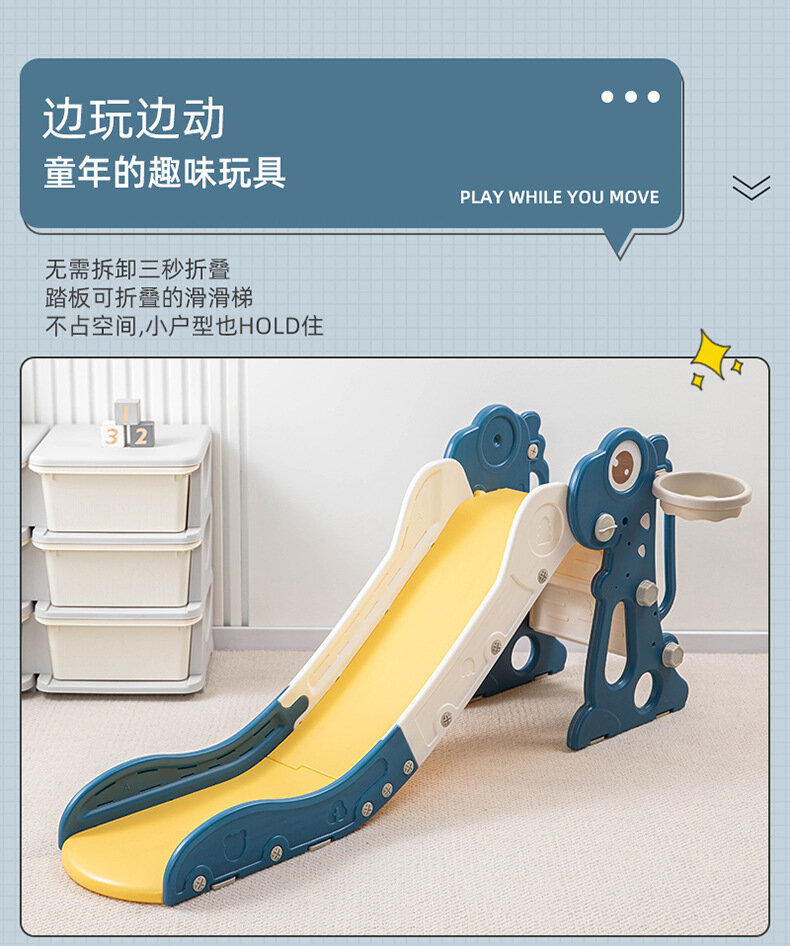Горка-динозавр, складная, многофункциональная, с мячом и корзиной, синяя