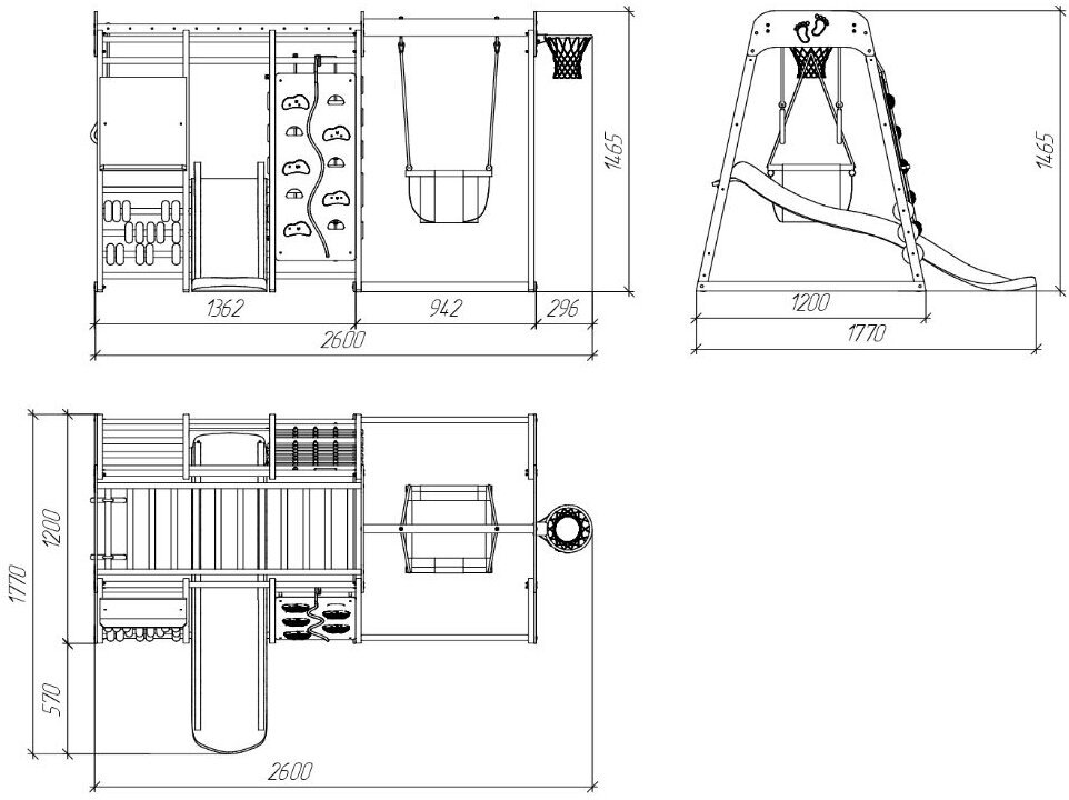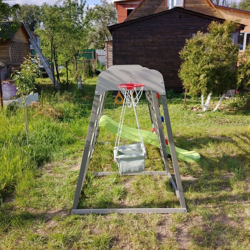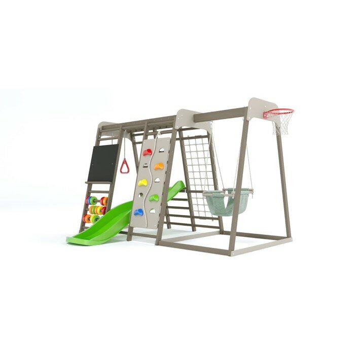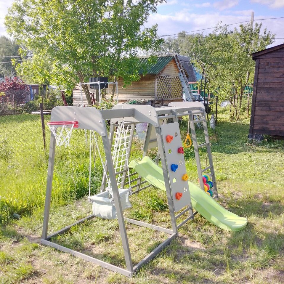 | Комплектация комплекса | баскетбольное кольцо / гимнастические кольца / горка / канат / качели / лестница / мат / рукоход / сетка для лазания / скалолазная стенка |