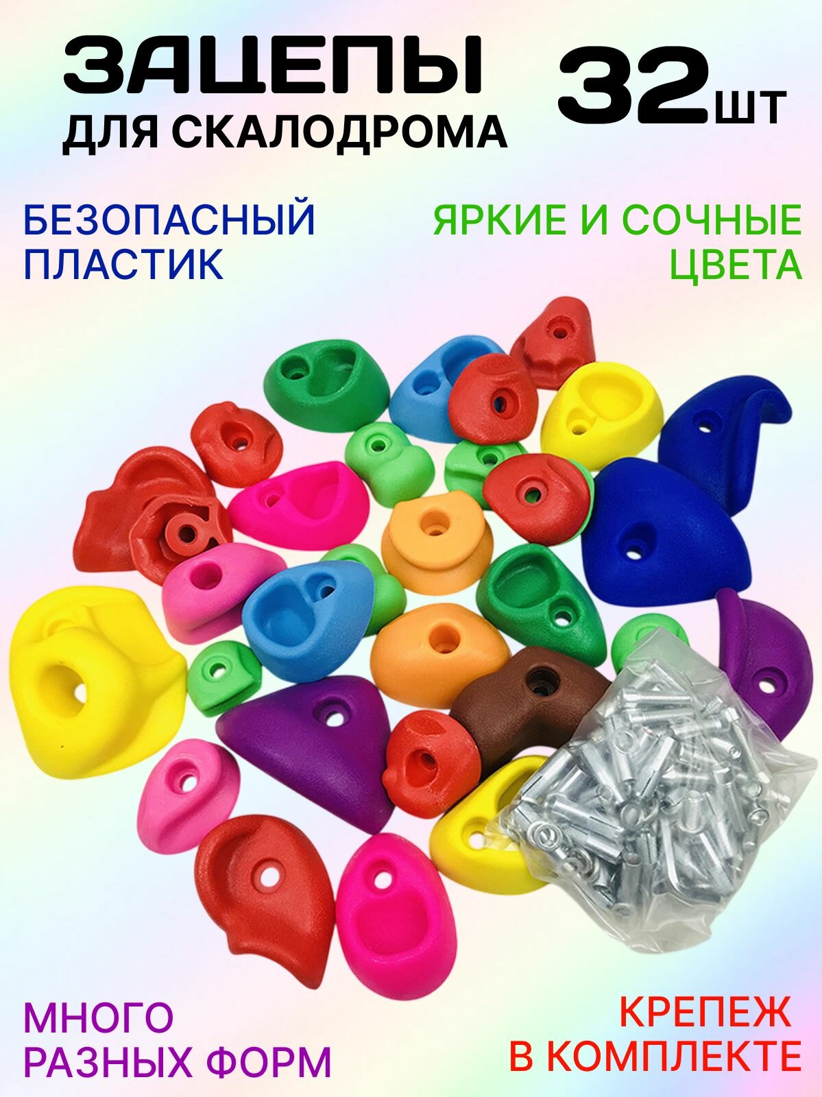 Купить Зацепы для скалодрома 32 шт. разноцветные, крепеж в комплекте