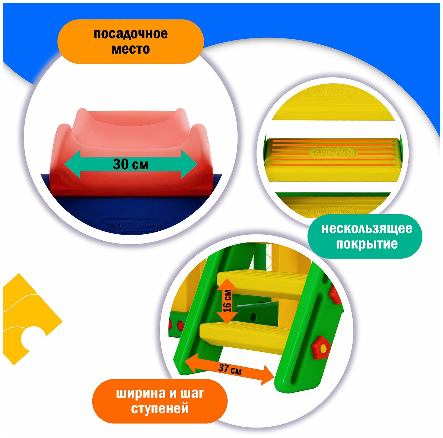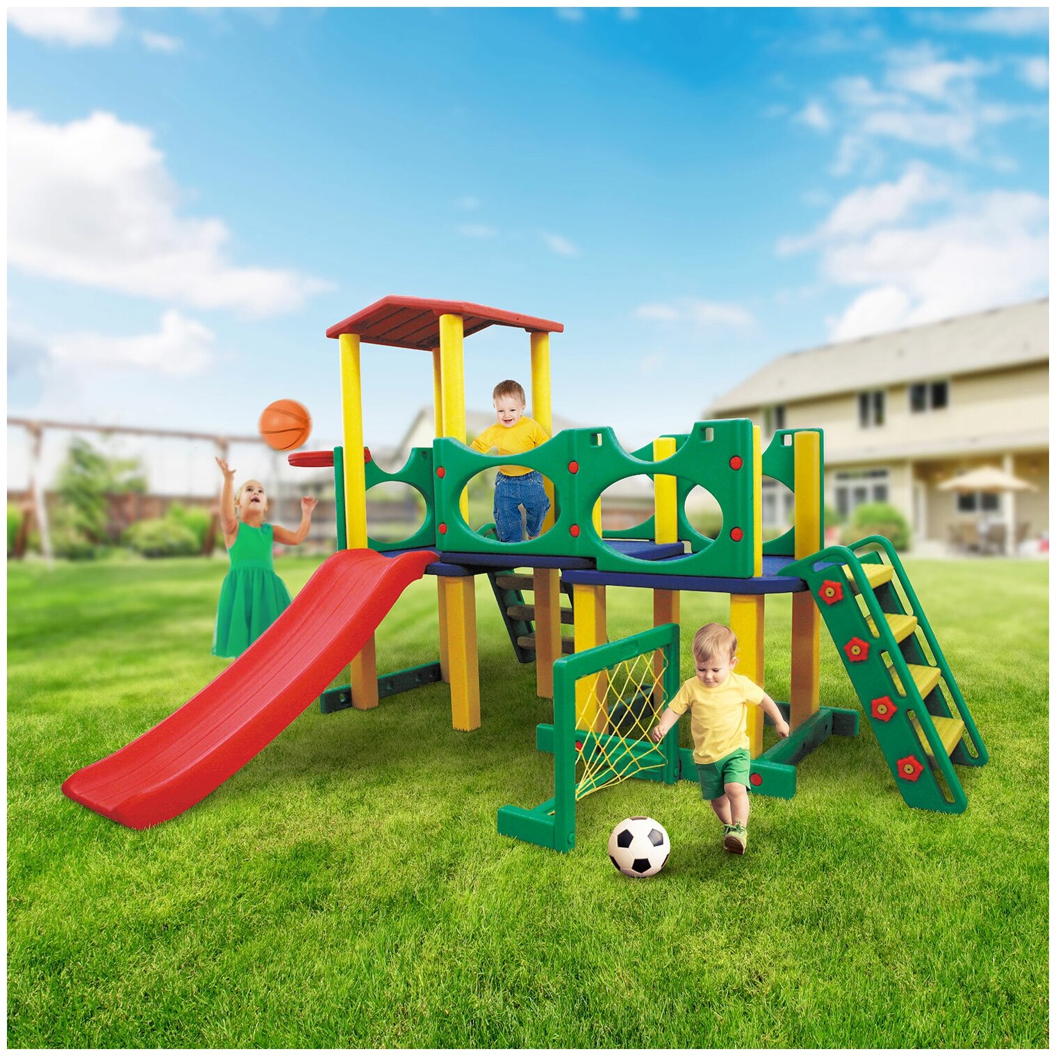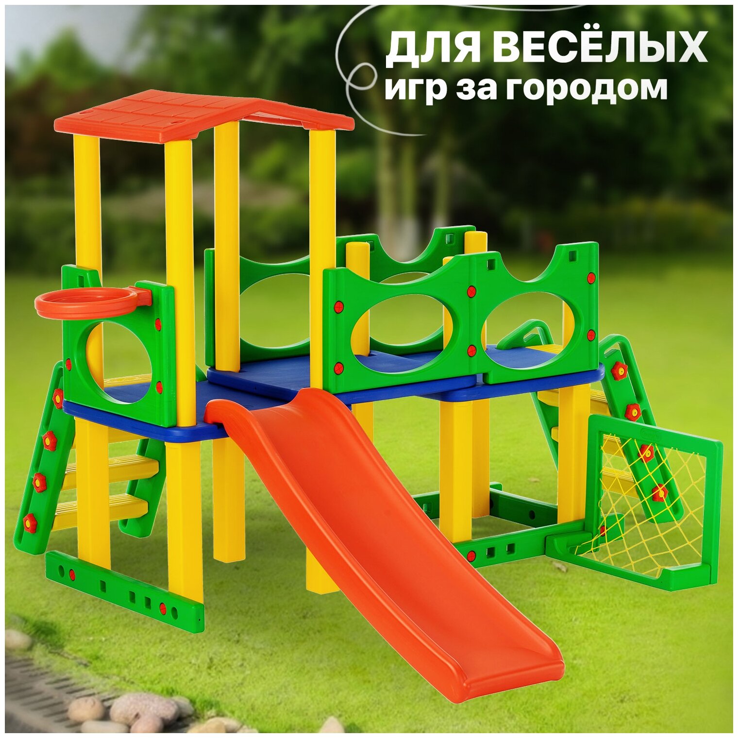 Купить Детский игровой комплекс Happy Box JM-731C (Южная Корея) для дома и улицы: детская горка, баскетбольное кольцо с мячом, футбольные ворота с мячом
