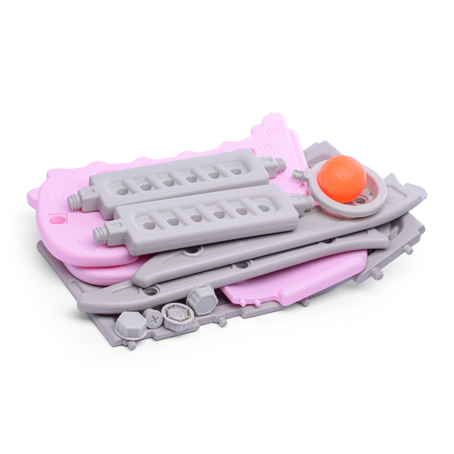 Купить Горка детская пластиковая "Динозаврик" от1 до 3 лет. С баскетбольным кольцом. Мяч в комплекте (цвет розовый)