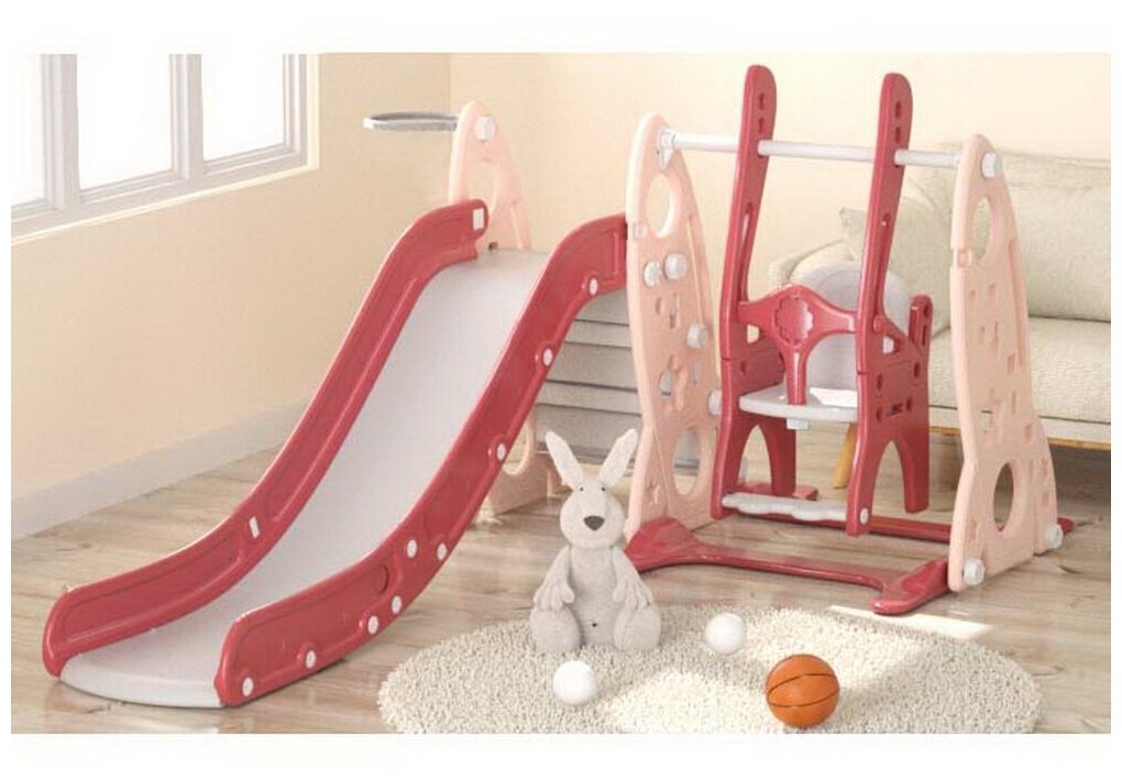 Горка детская с качелями Pituso Шатл, игровой комплекс 3 в 1 с баскетбольным кольцом, цвет красный интересное: