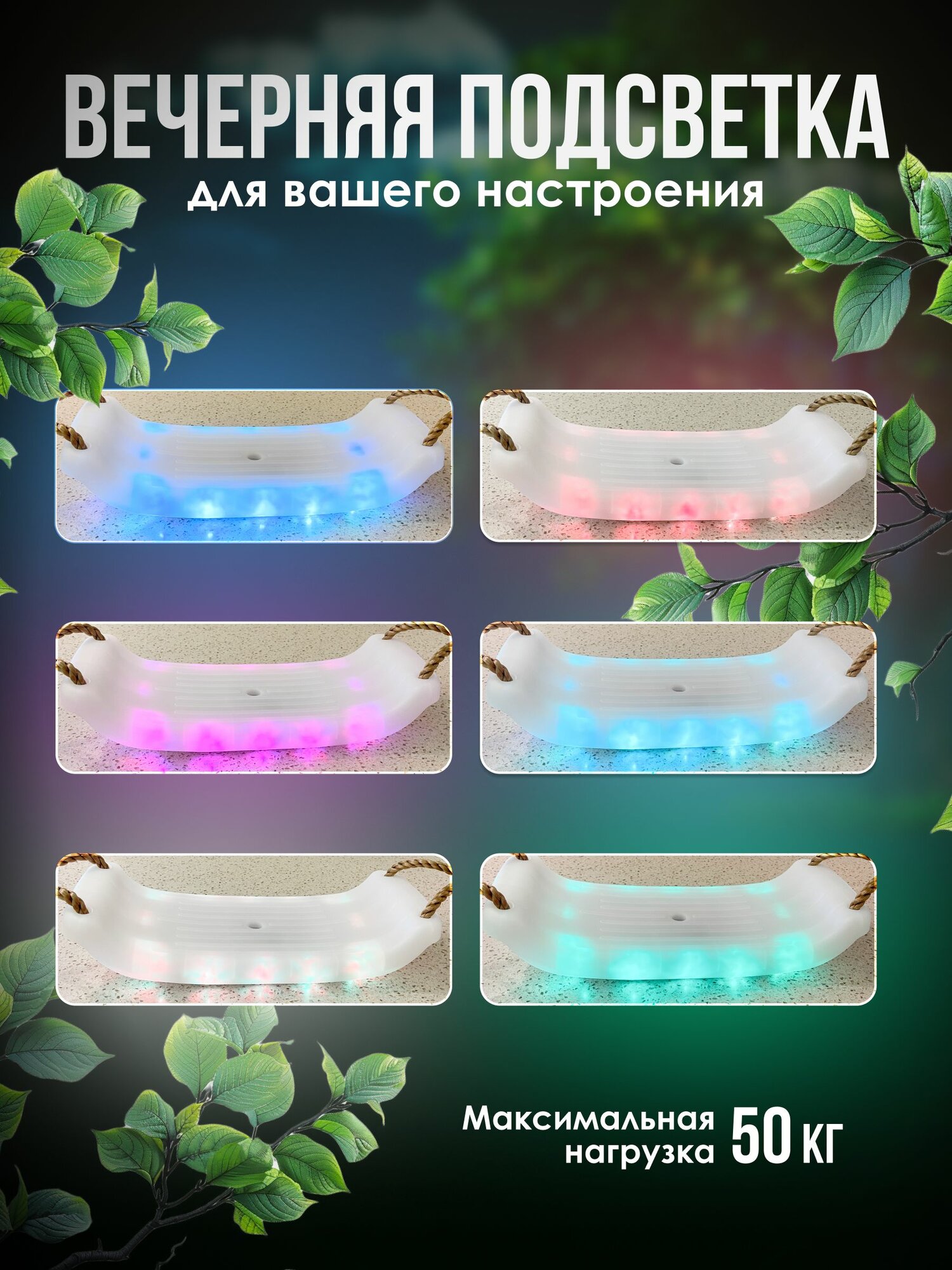 Качели Perfetto Sport PS-322, подвесные, пластик, с неоновой подсветкой, до 50кг интересное: