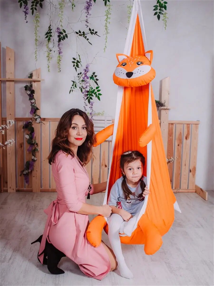СохранитьДетское подвесное кресло-качели "Кокон Лисенок" от бренда "Покачайка" интересное:
