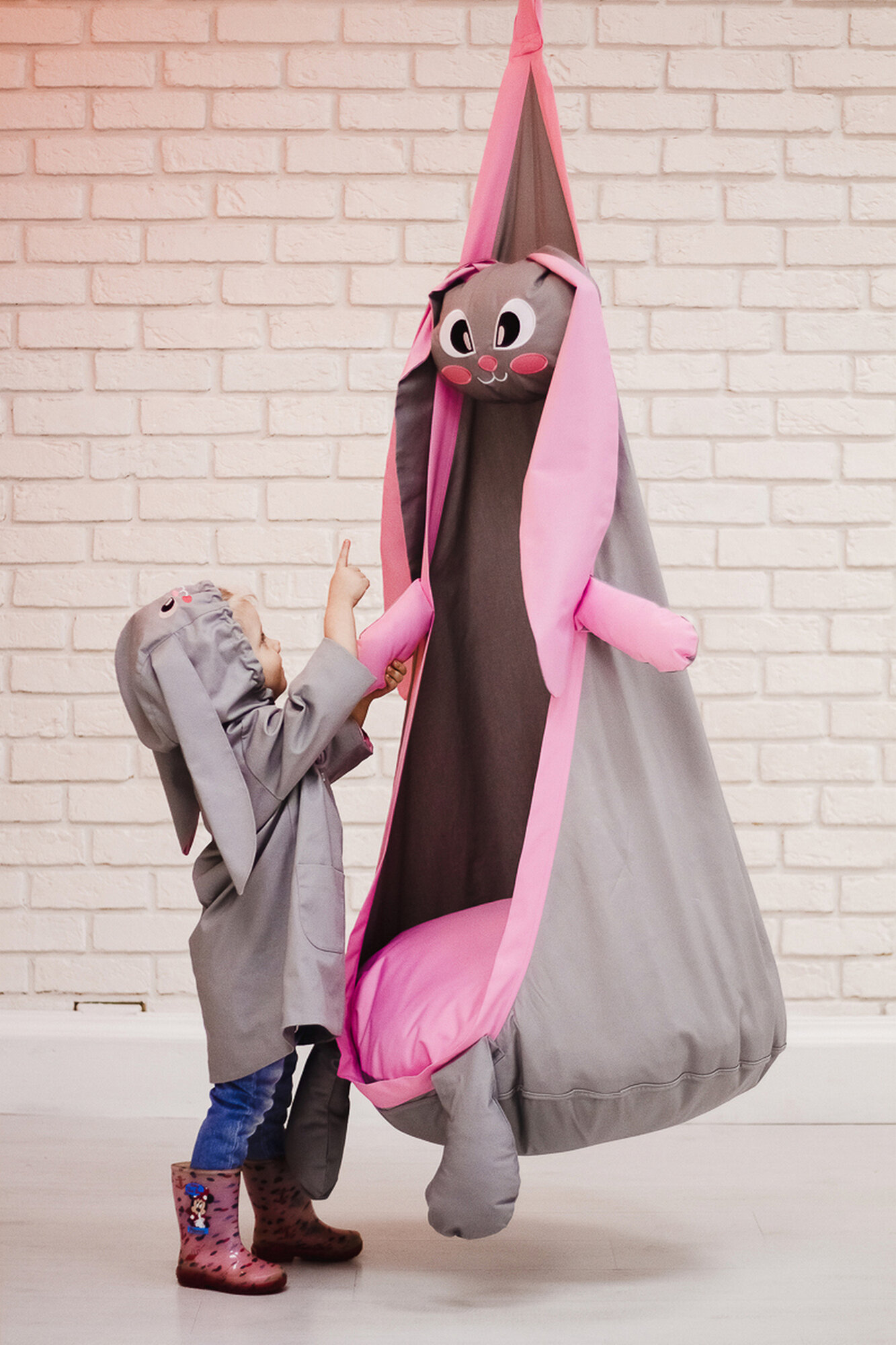 СохранитьДетское подвесное кресло-качели "Кокон Зайка" от бренда "Покачайка" интересное: