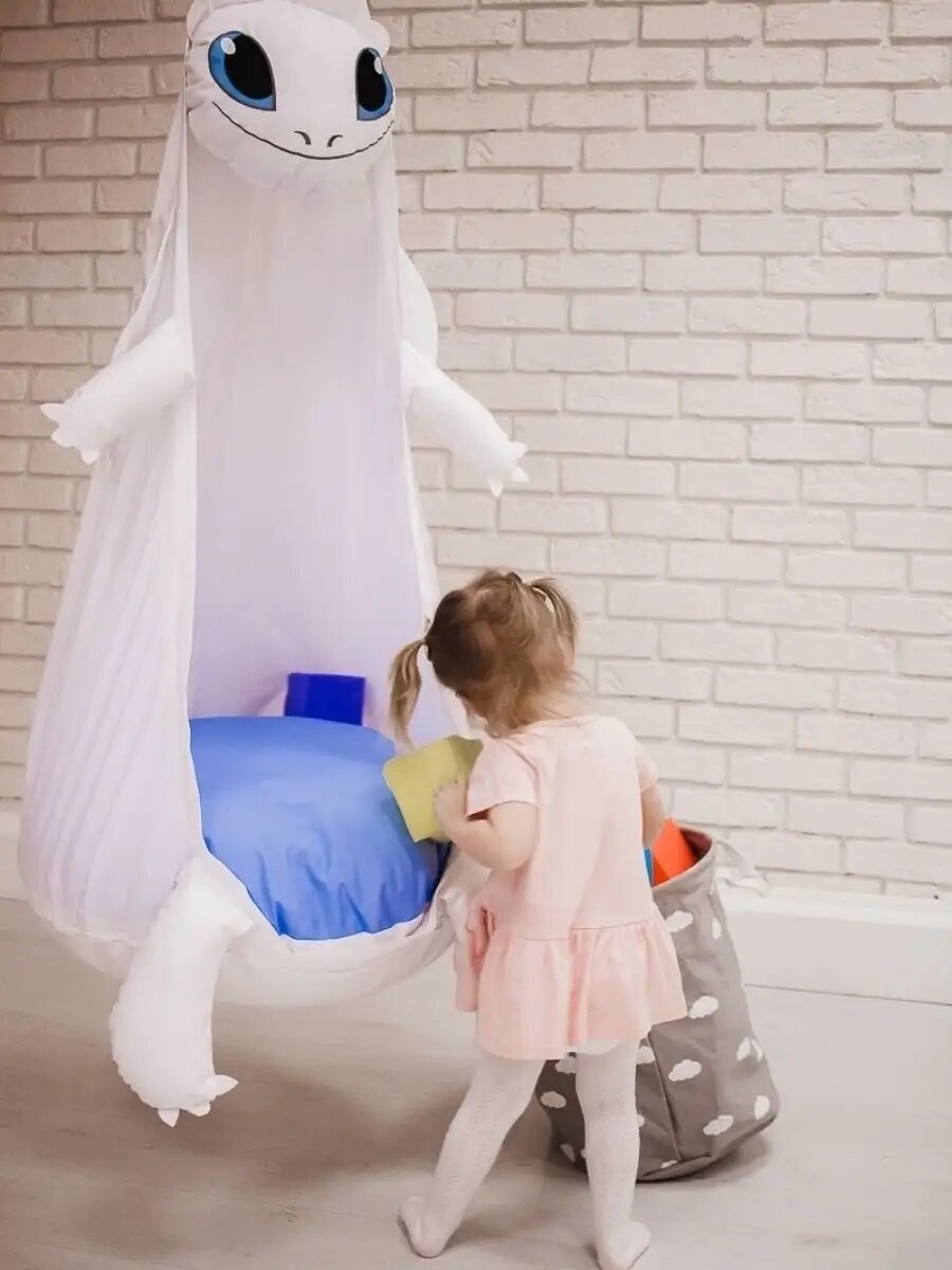 СохранитьДетское подвесное кресло-качели "Кокон Белый Дракон" от бренда "Покачайка" интересное: