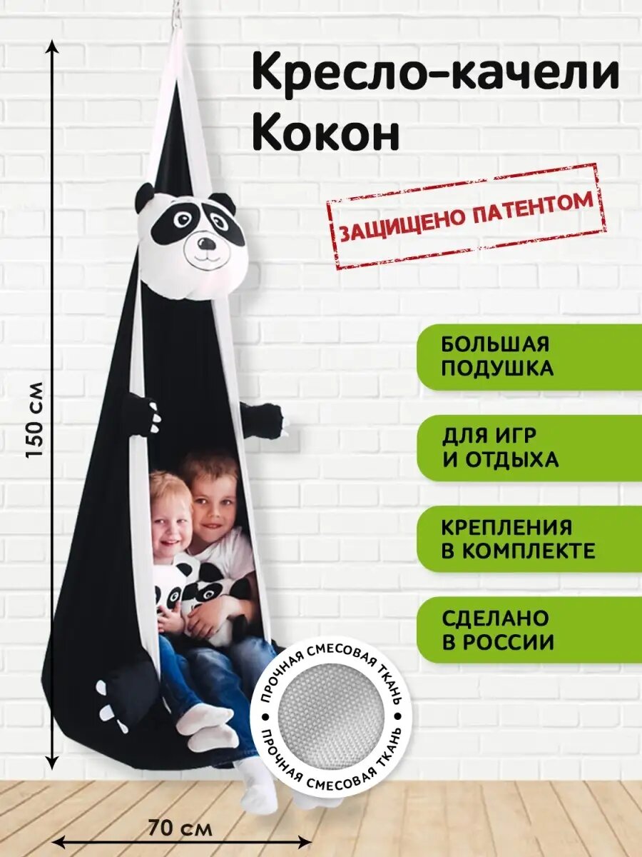 Купить Детское подвесное кресло-качели "Кокон Панда" от бренда "Покачайка"
