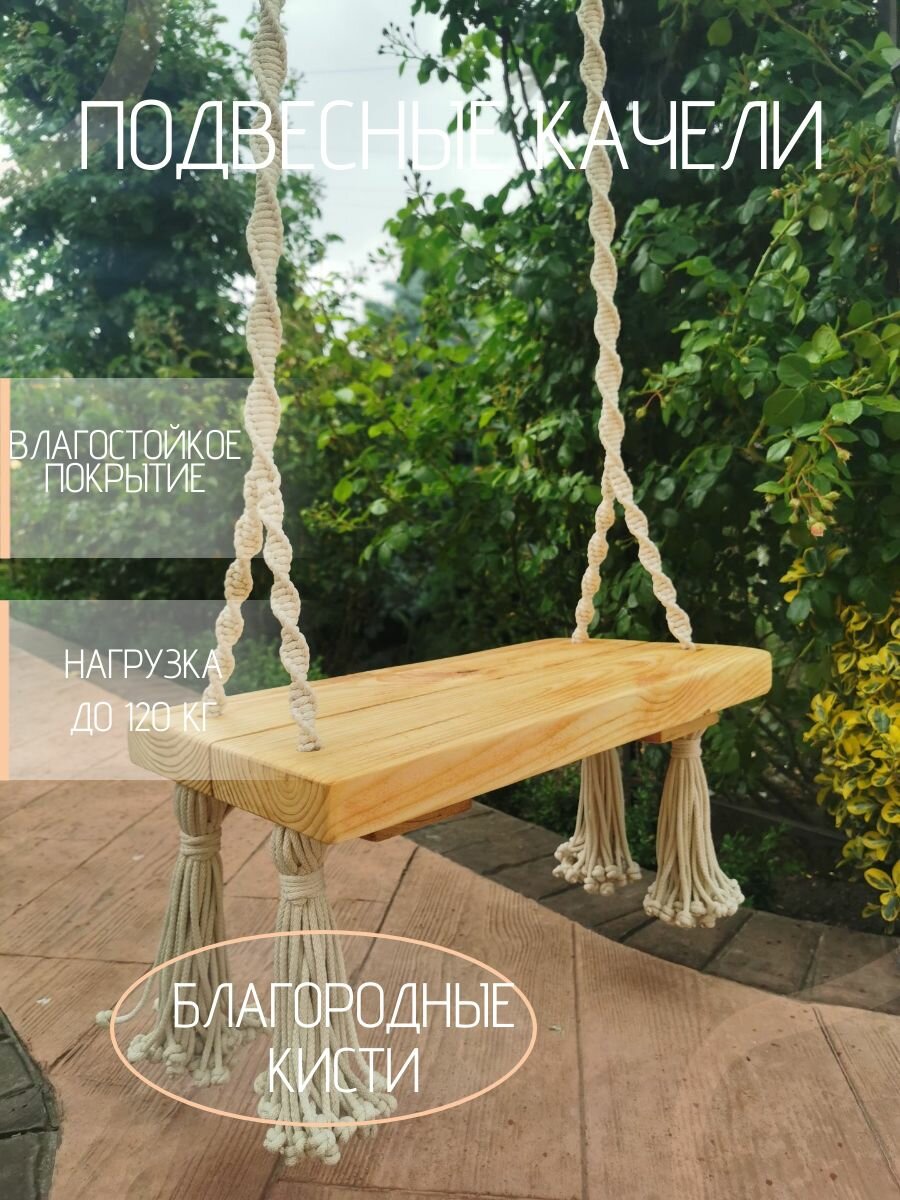 Подвесные качели CLUBDECOR, деревянные, с бахромой, бежевые, 186х74х30см интересное: