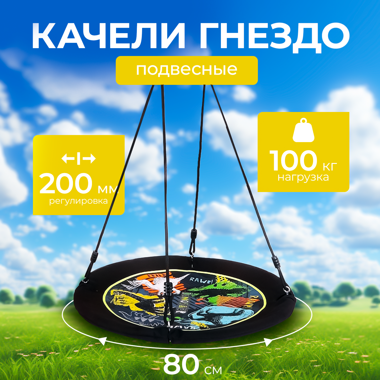 Качели "Гнездо" Dino, металл+влагостойкая ткань, с регулировкой высоты, нагрузка до 100кг интересное: