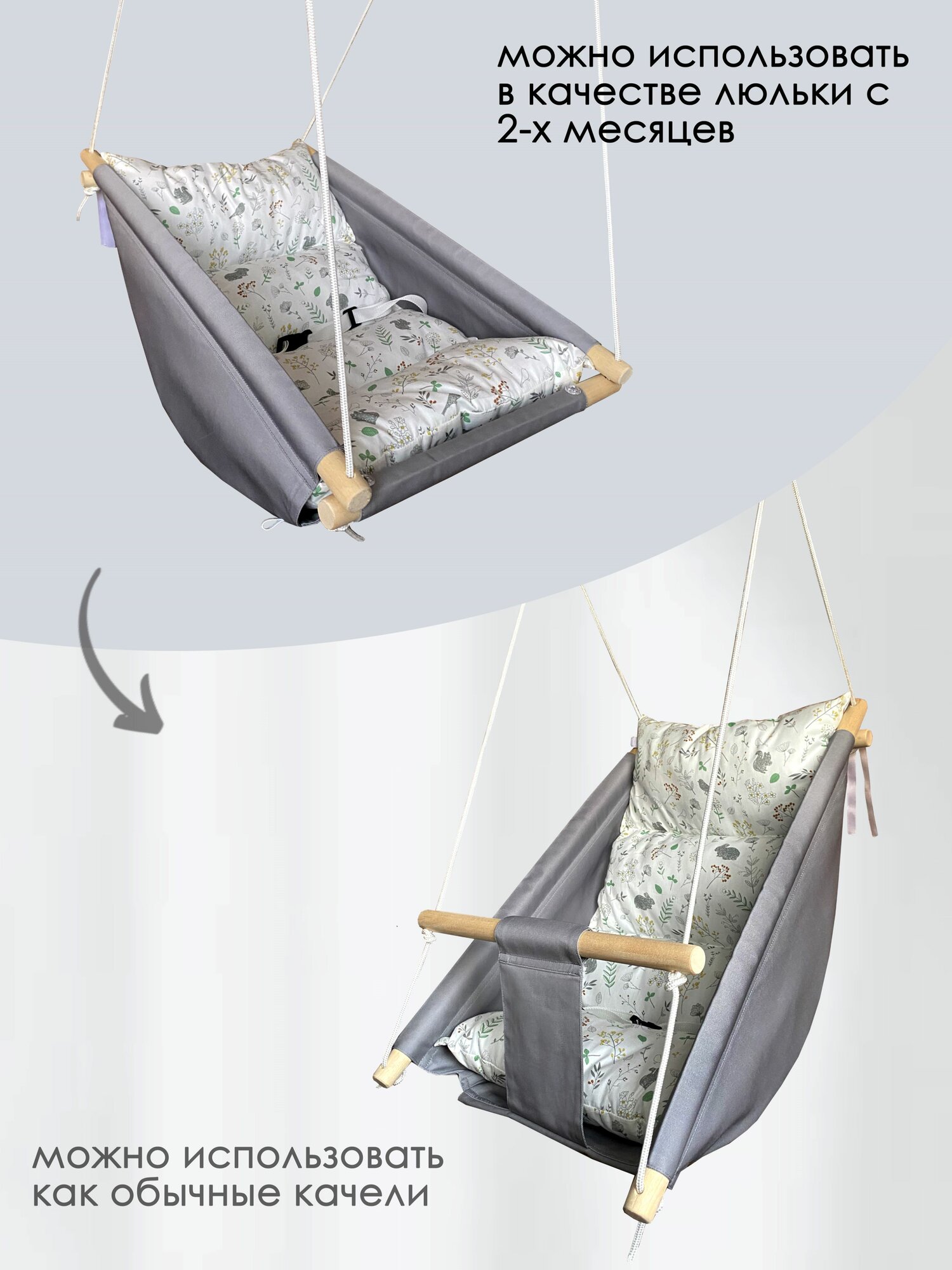 Детские подвесные качели+серые качели+матрасик зайчата+для дома+домашние качели+люлька+шезлонг+мягкие качели+для детей с рождения
