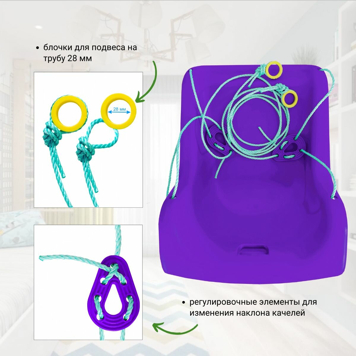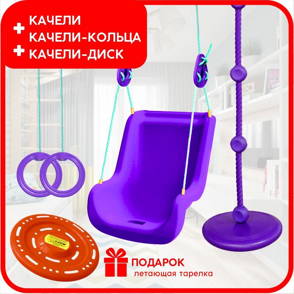 Купить Набор из 3-х качелей подвесных детских со спинкой Leco для детей от 3-х лет фиолетовые
