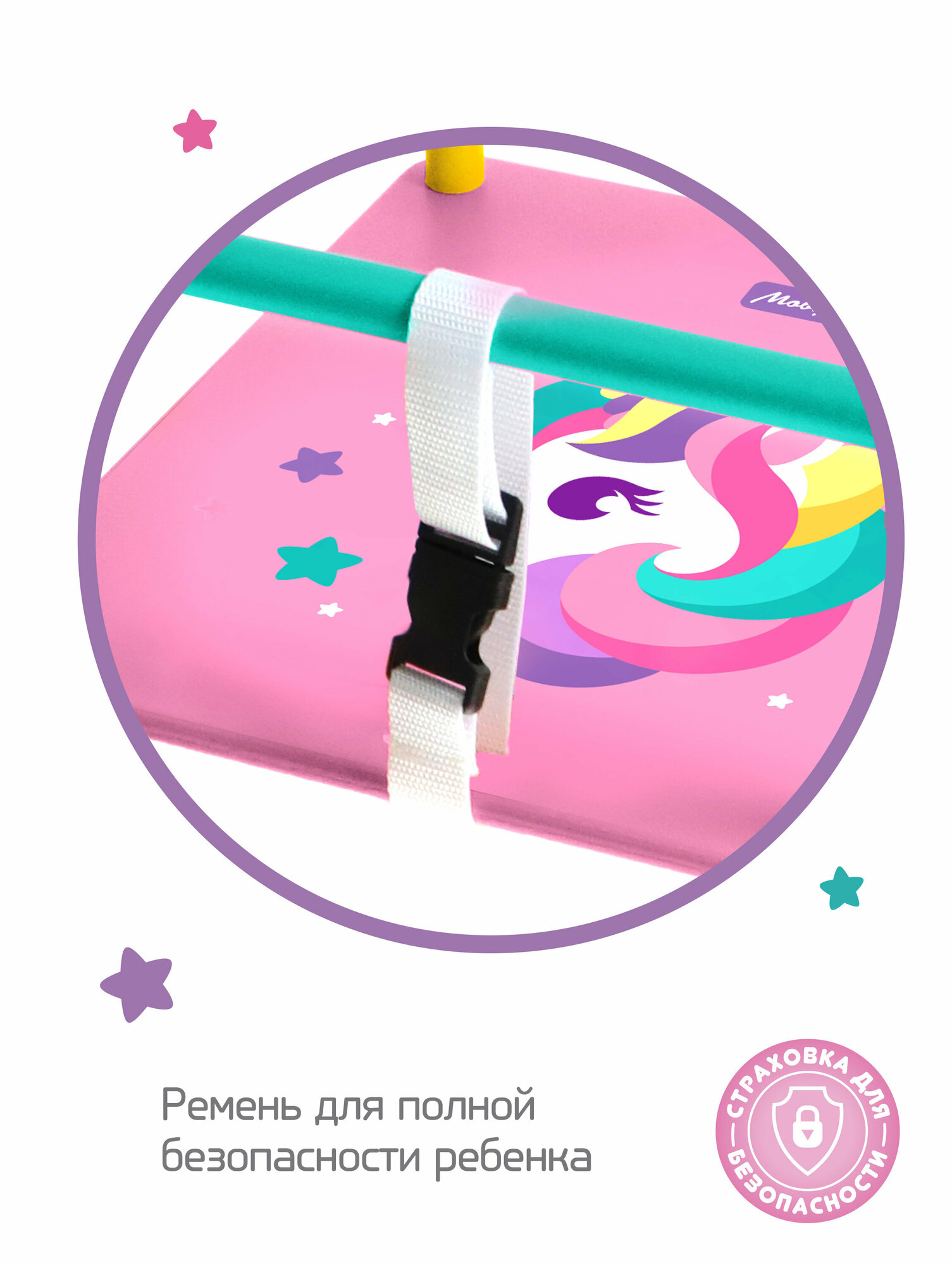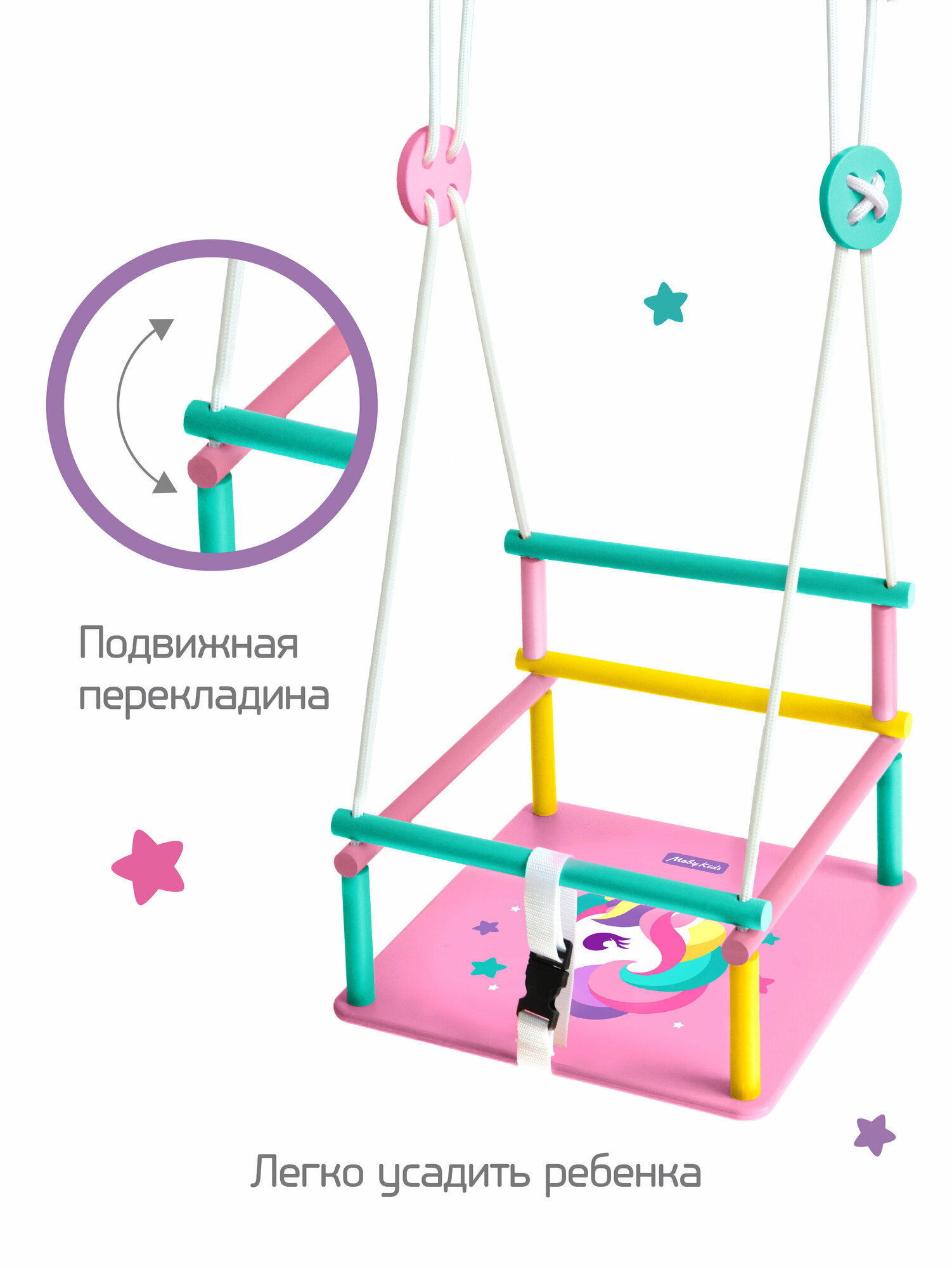 СохранитьКачели детские подвесные деревянные с рисунком Moby Kids "Комета" Единорог, максимальная нагрузка 35 кг интересное: