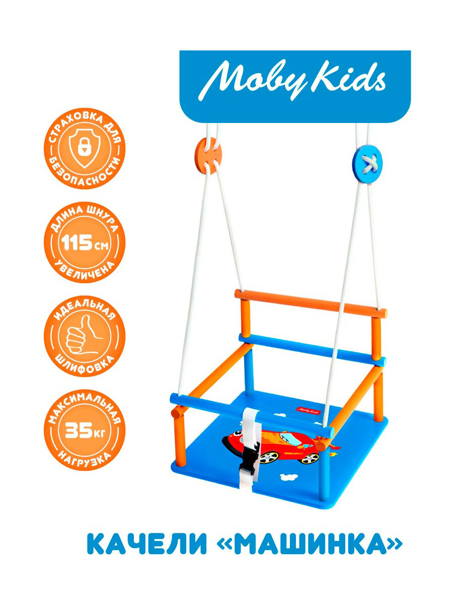 Качели Полет с ремнем для страховки, 2 шнура для подвешивания Moby Kids 962505