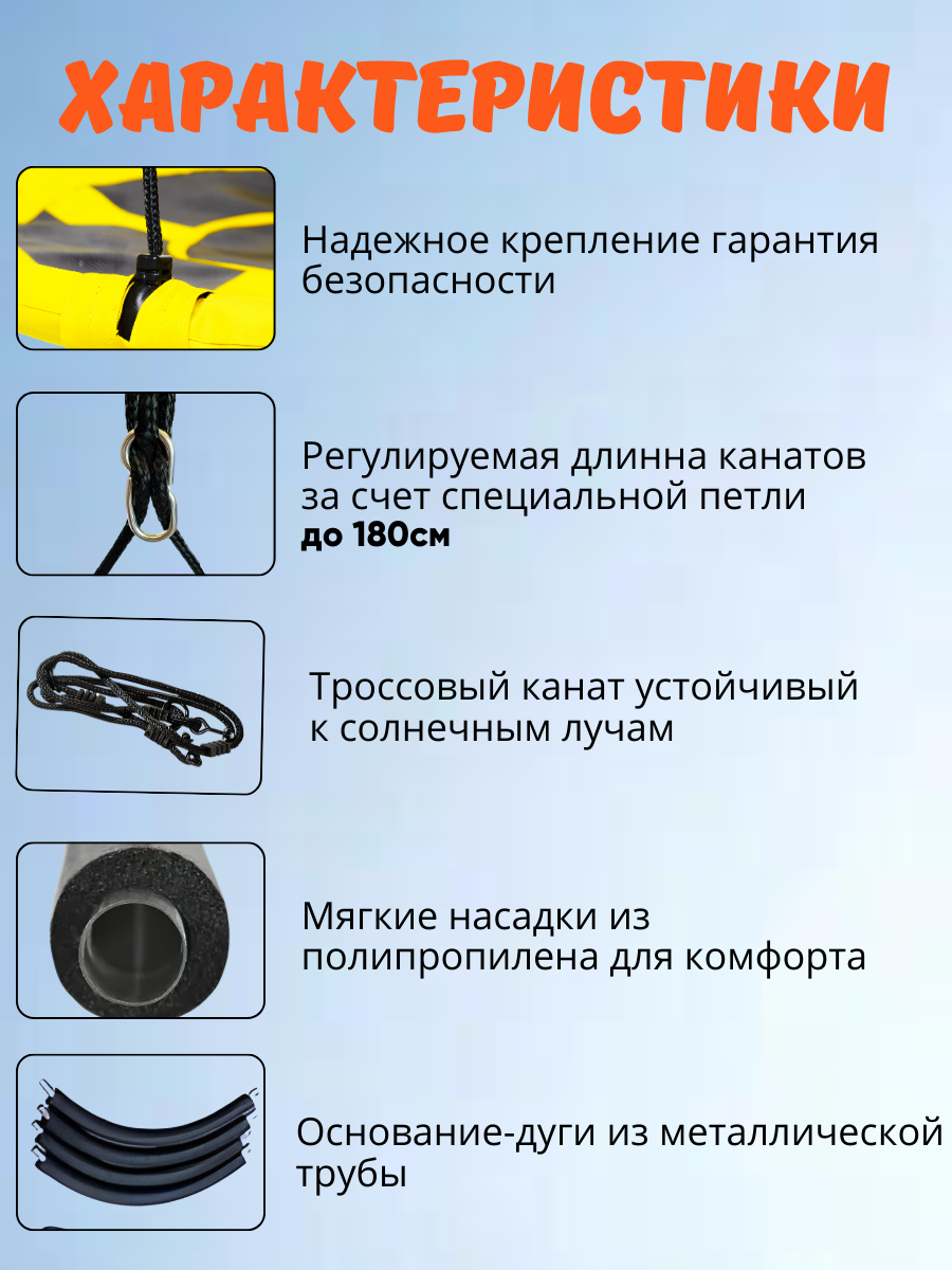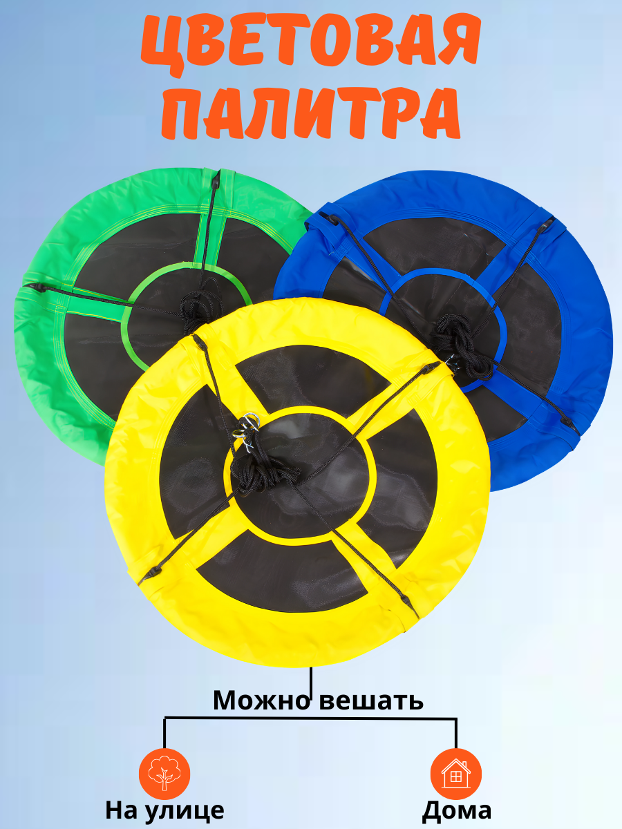 Качели-гнездо, подвесные, 100x100x180см, желто-черные, регулируемая высота интересное: