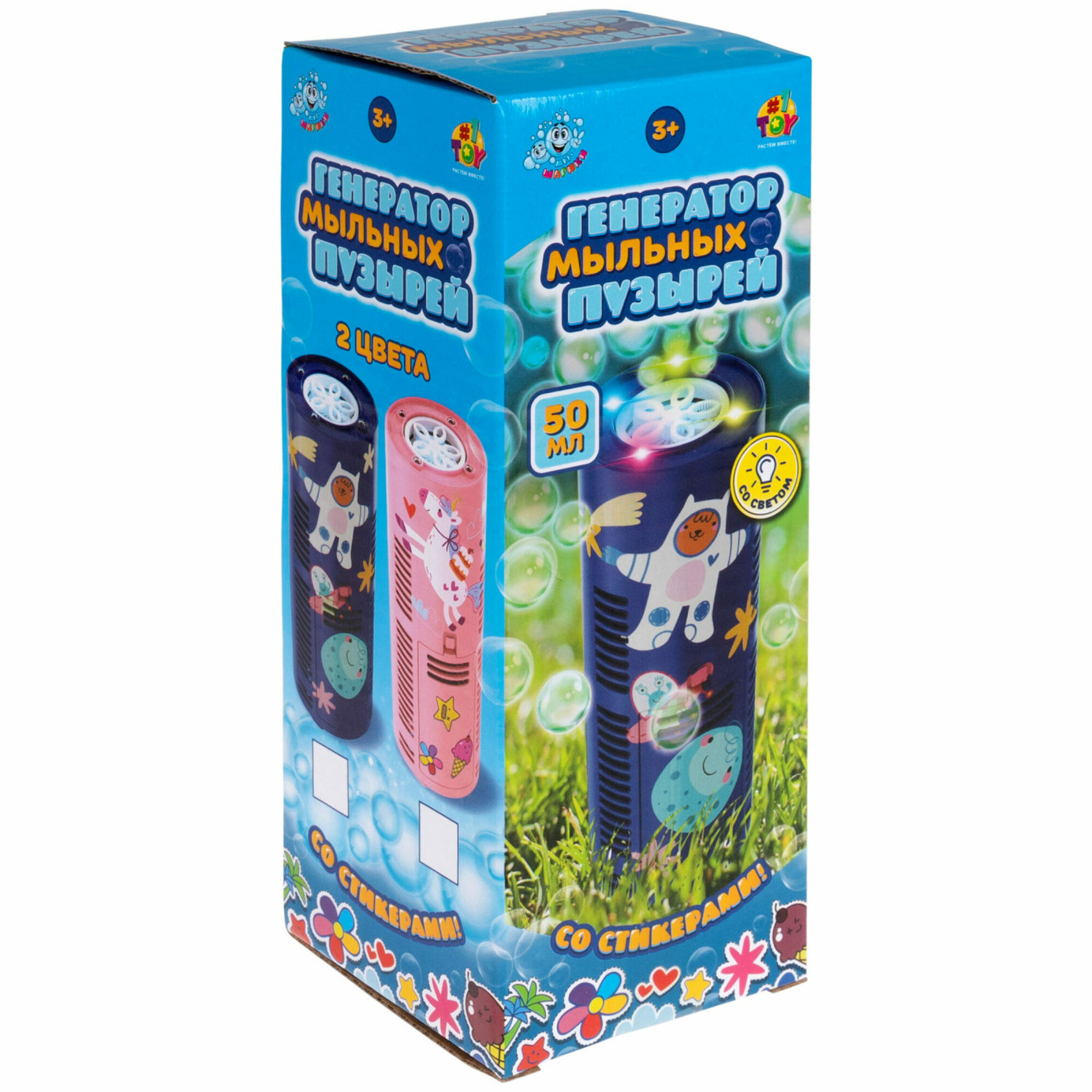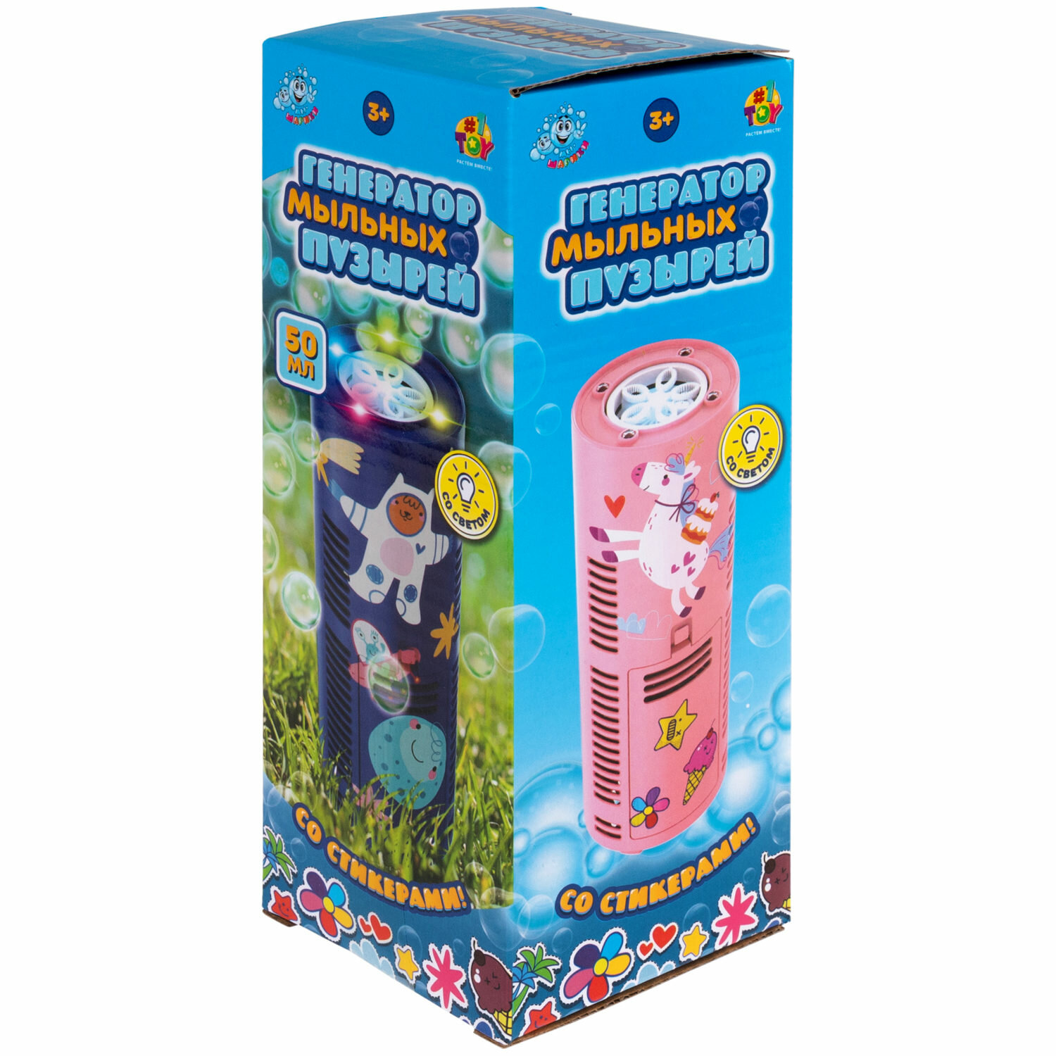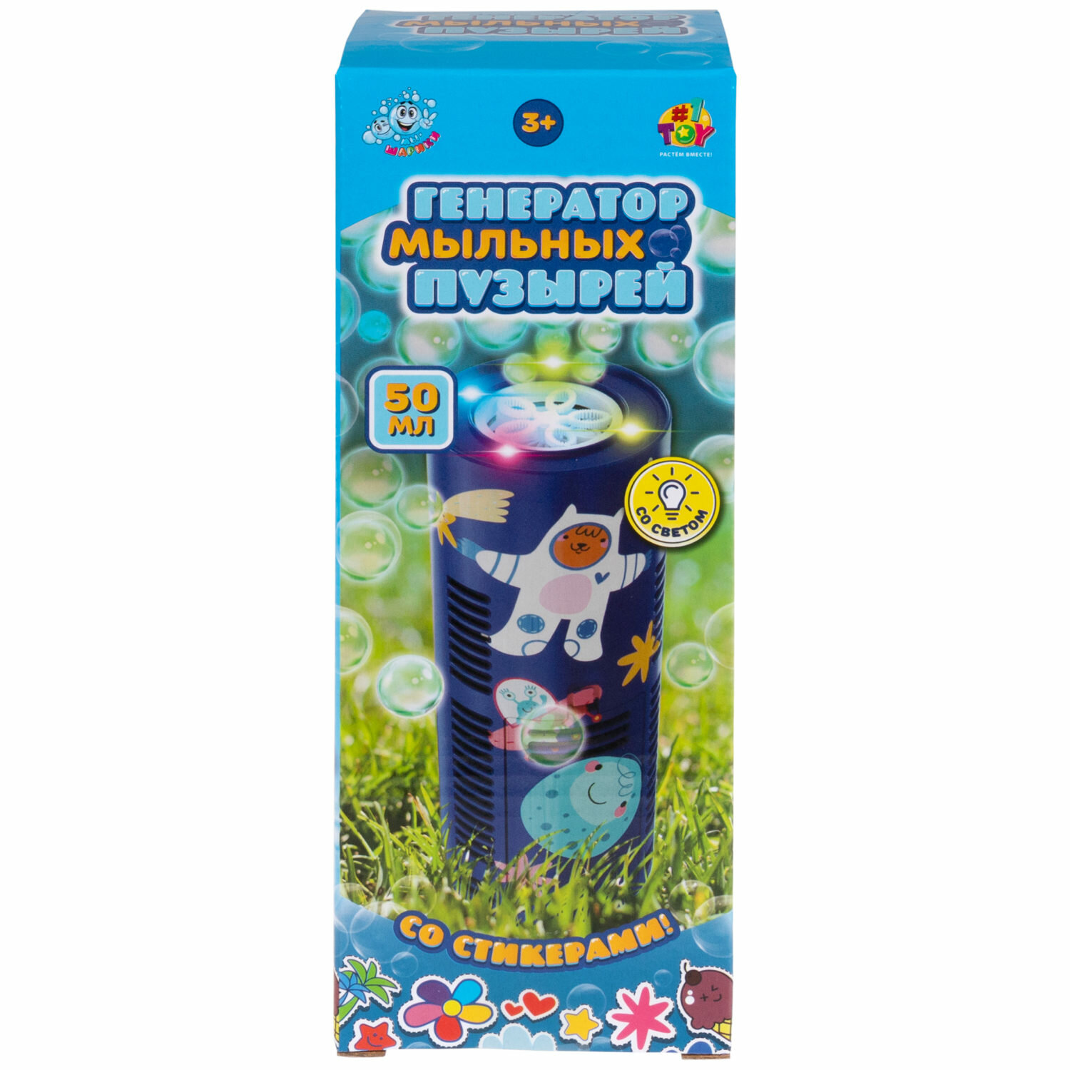 Купить Генератор мыльных пузырей с раствором 1TOY со стикерами, светом, детские игрушки для улицы и дома, синий