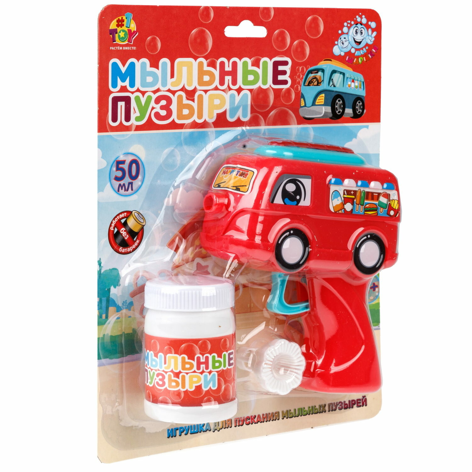 Купить Пистолет для пускания мыльных пузырей 1TOY Мы-шарики, фургон с мороженым, 50 мл, красный