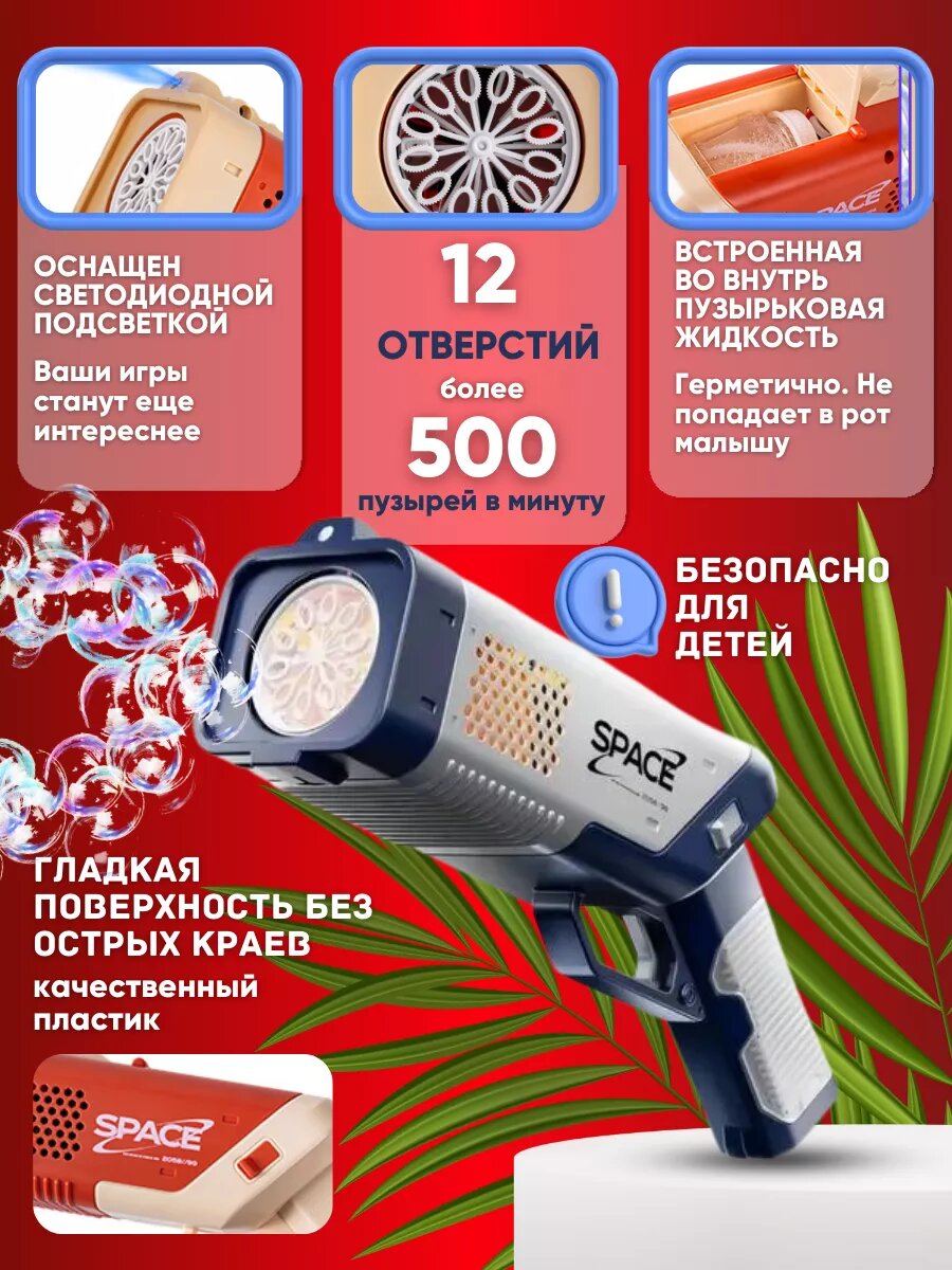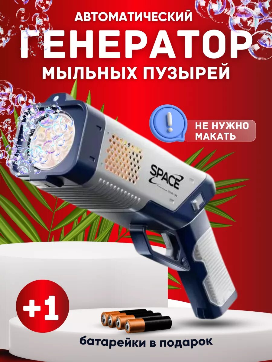 Пистолет для мыльных пузырей на батарейках синий \ генератор мыльных пузырей с подсветкой интересное: