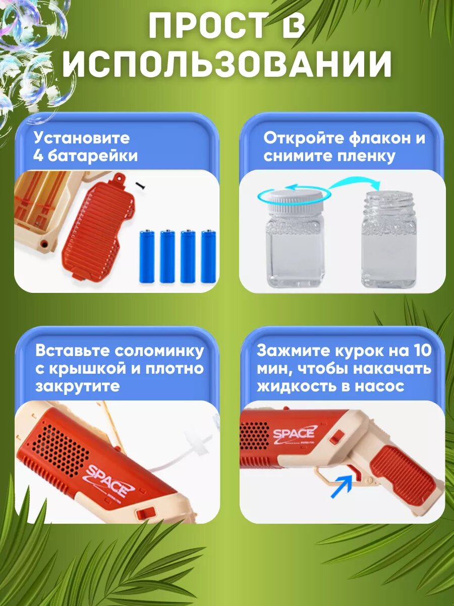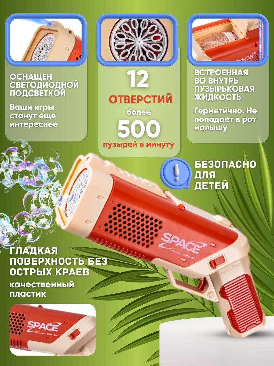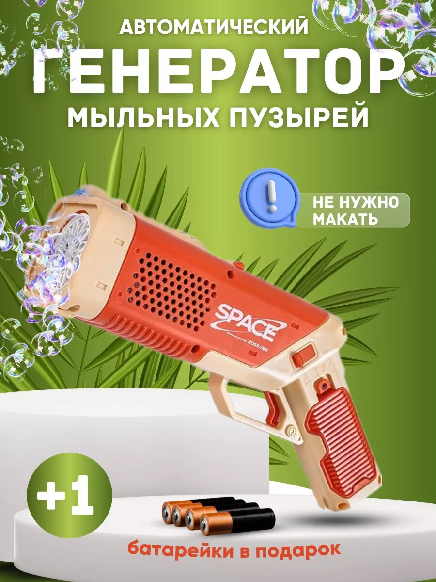 Пистолет для мыльных пузырей на батарейках оранжевый \ Генератор мыльных пузырей с подсветкой интересное: