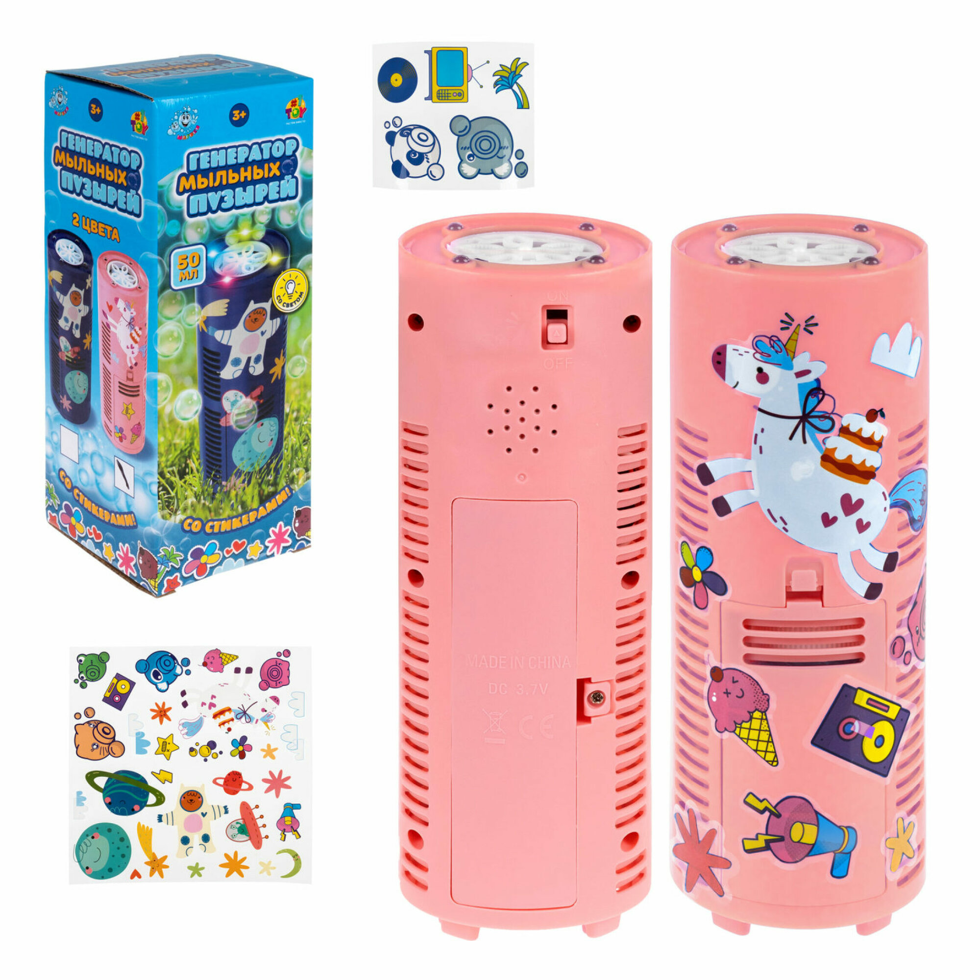 Генератор мыльных пузырей с раствором 1TOY со стикерами, светом, детские игрушки для улицы и дома, розовый интересное: