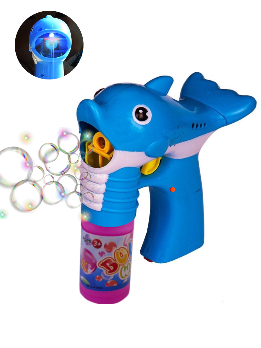 Купить Игрушка пистолет генератор для мыльных пузырей детский Дельфин на батарейках, подсветка и звук