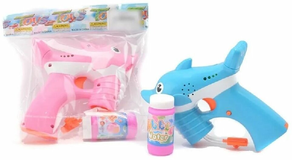 Игрушка пистолет механический генератор мыльных пузырей Дельфин, 2 цвета