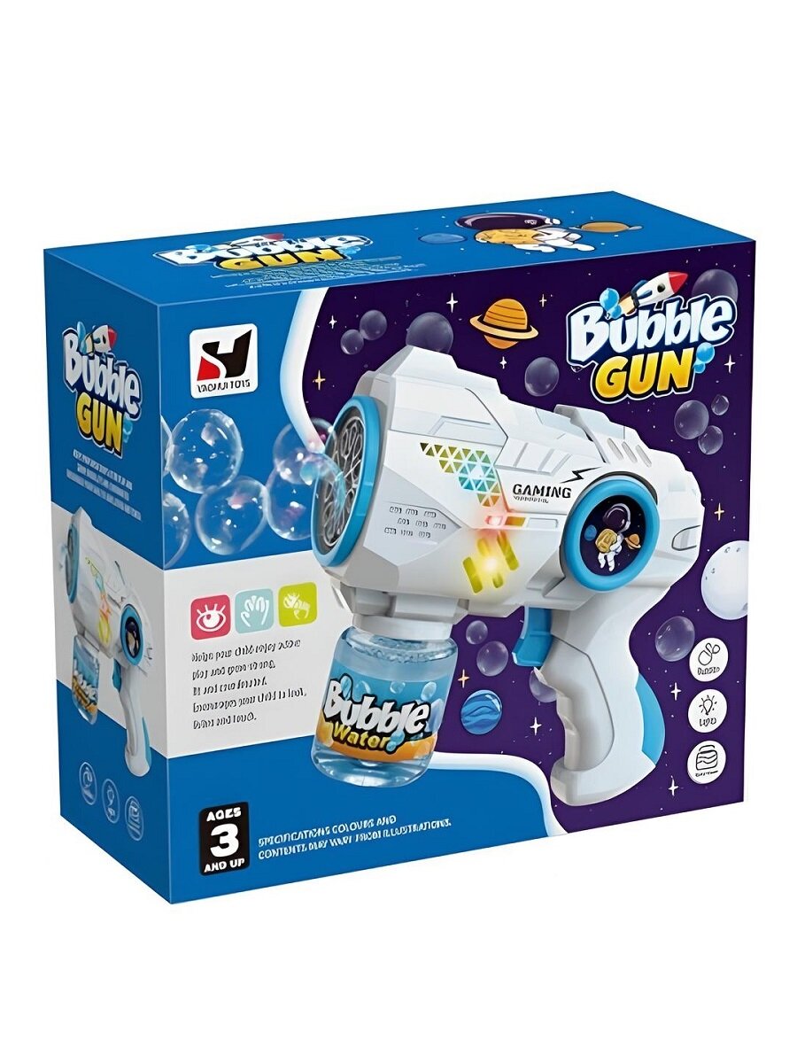 Купить Игрушка пистолет генератор для мыльных пузырей детский для мальчика на батарейках со светом