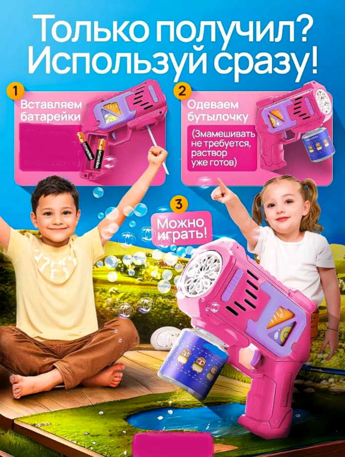 Детский пистолет для мыльных пузырей HC TOYS, на батарейках, розовый интересное: