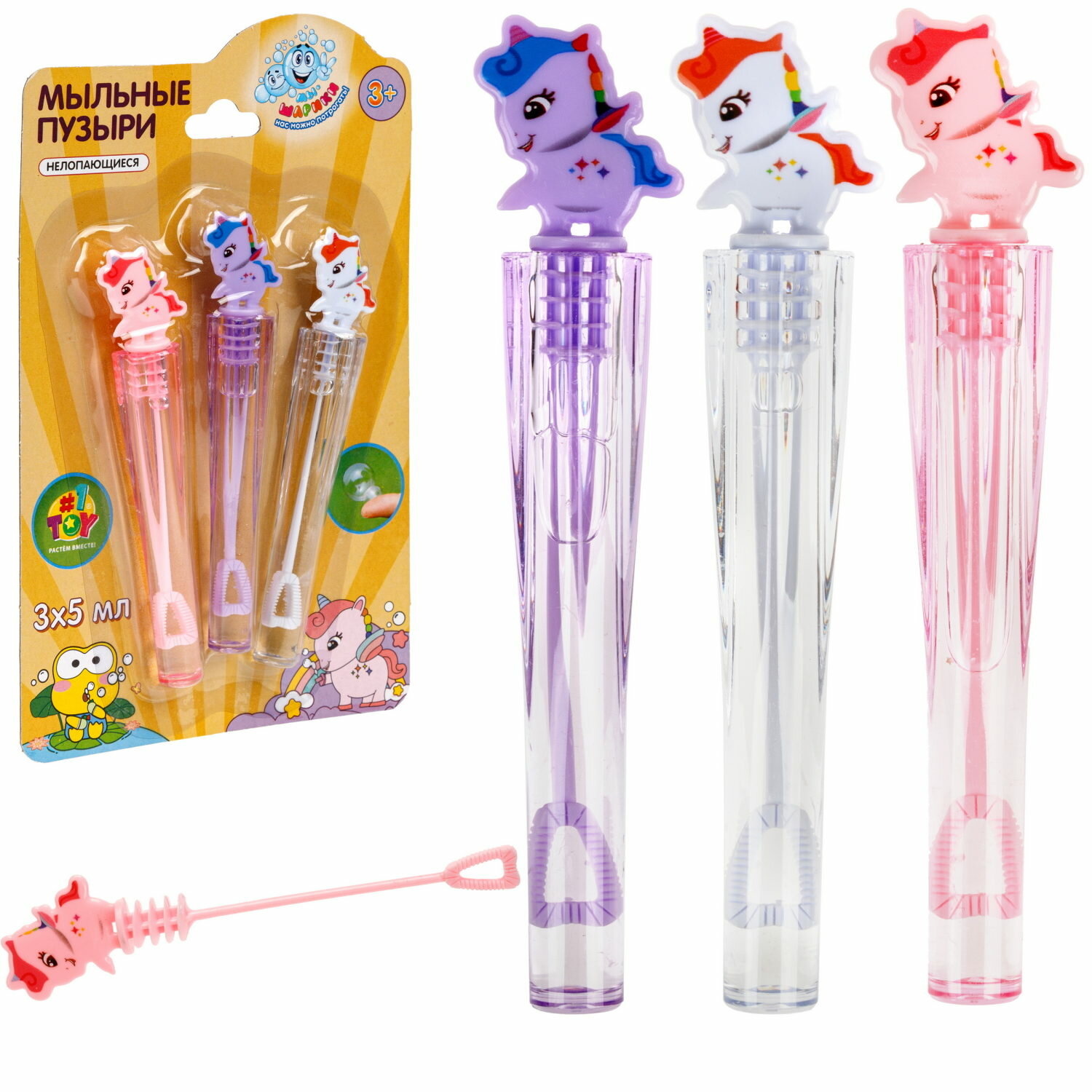 Купить Нелопающиеся мыльные пузыри 1TOY Мы-шарики! Единорог, детские маленькие, для малышей, набор 3 шт.
