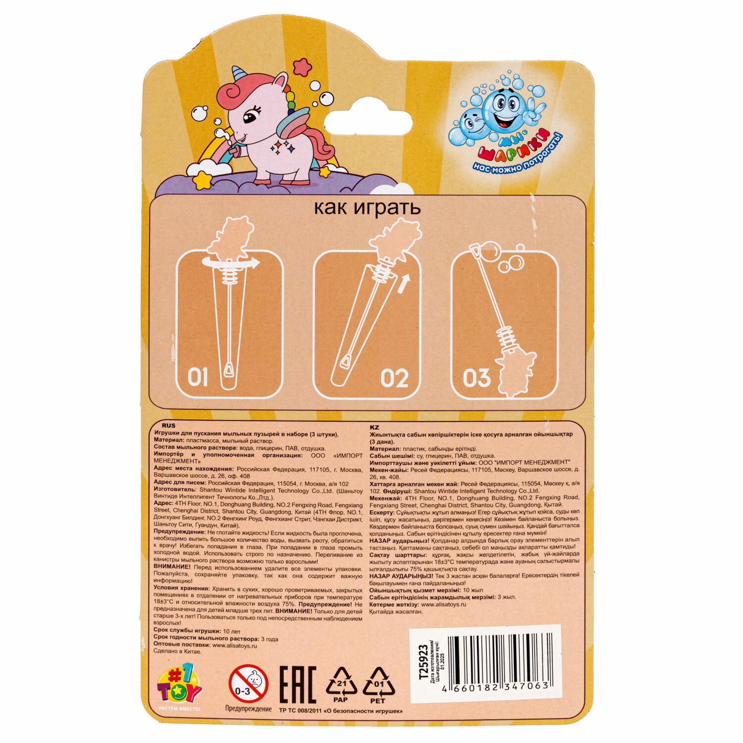 | Дополнительная информация | Мыльные пузыри 1шт. |