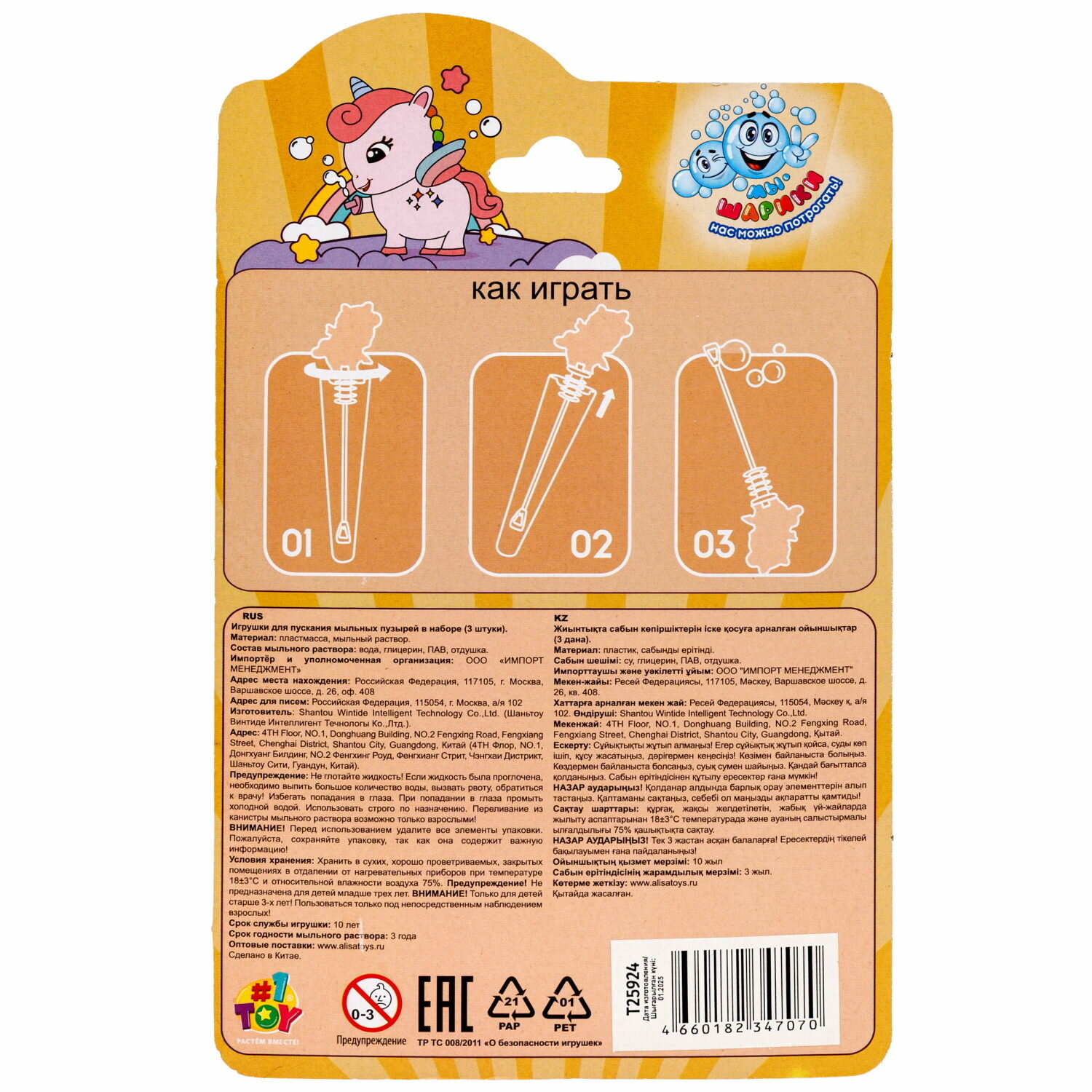| Дополнительная информация | Мыльные пузыри 1шт. |