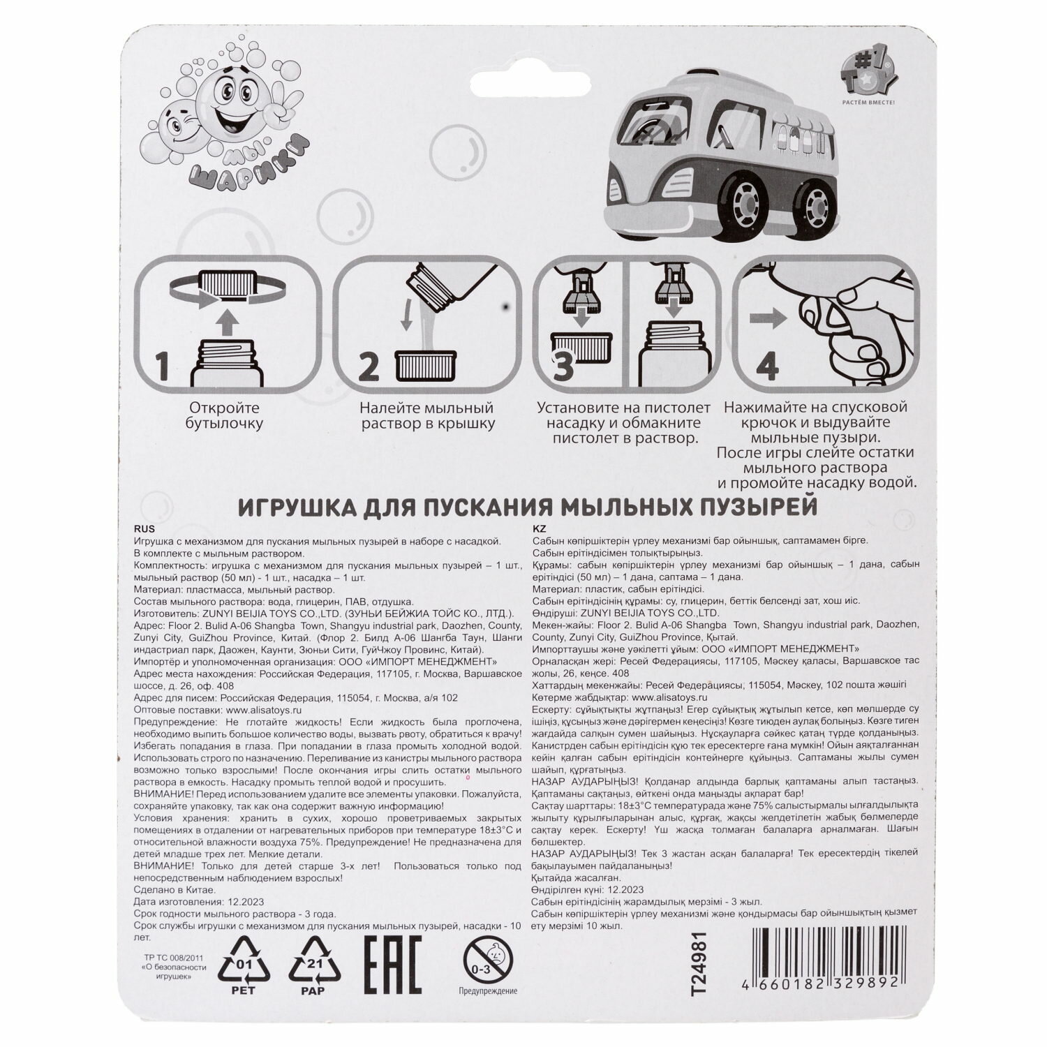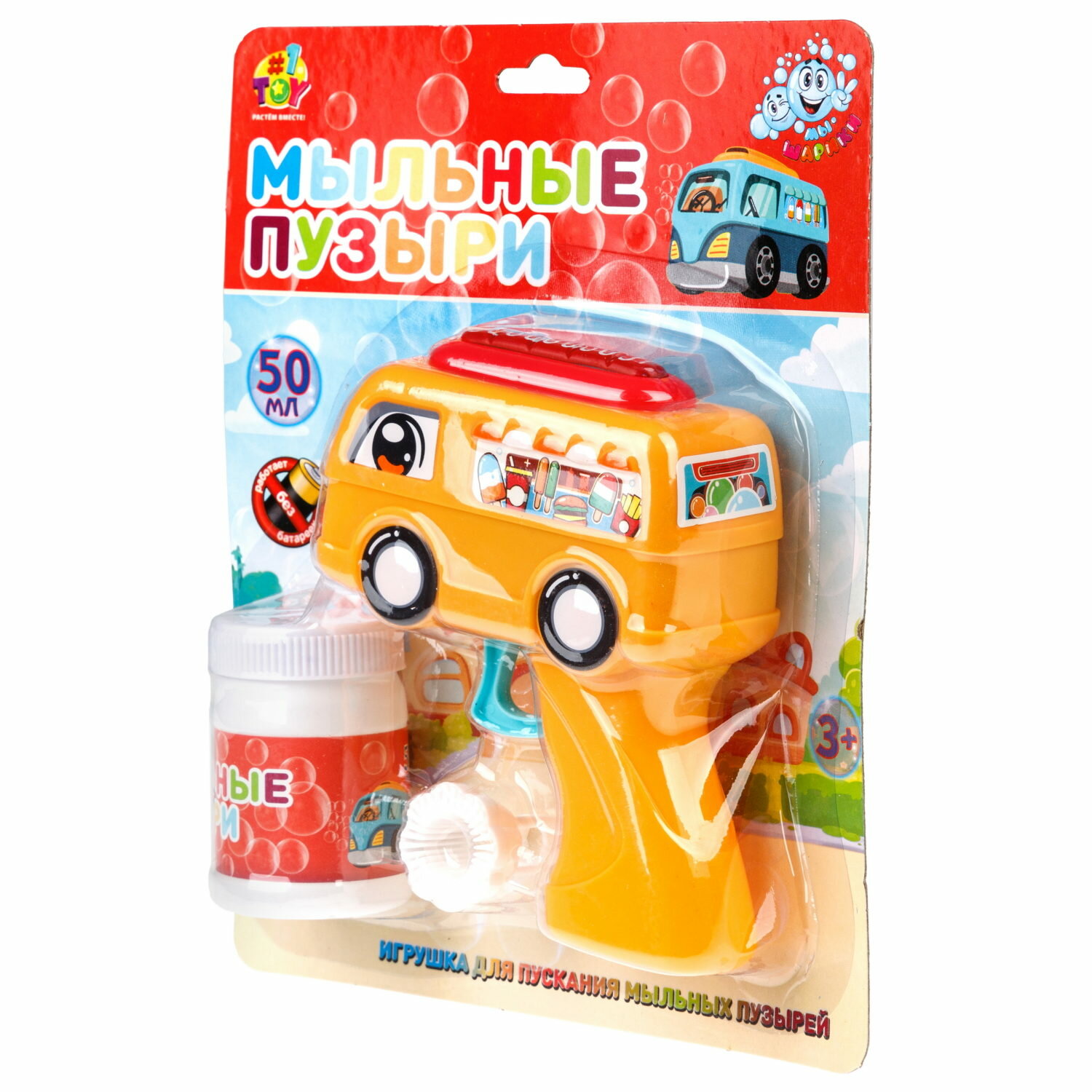 Пистолет для пускания мыльных пузырей 1TOY Мы-шарики, фургон с мороженым, 50 мл, желтый интересное: