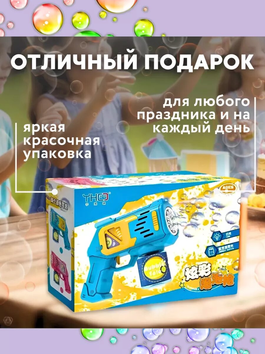 Пистолет-генератор мыльных пузырей РобоМир, со световыми эффектами, питание от батареек AA интересное: