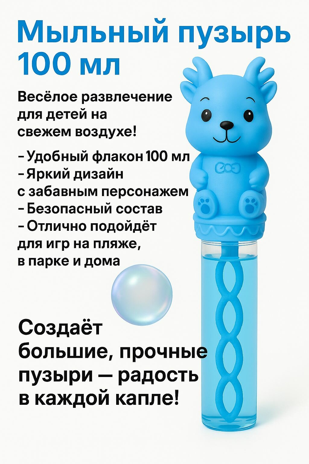 Купить Мыльные пузыри "Оленёнок", с фигуркой, прочные, голубые, 100мл