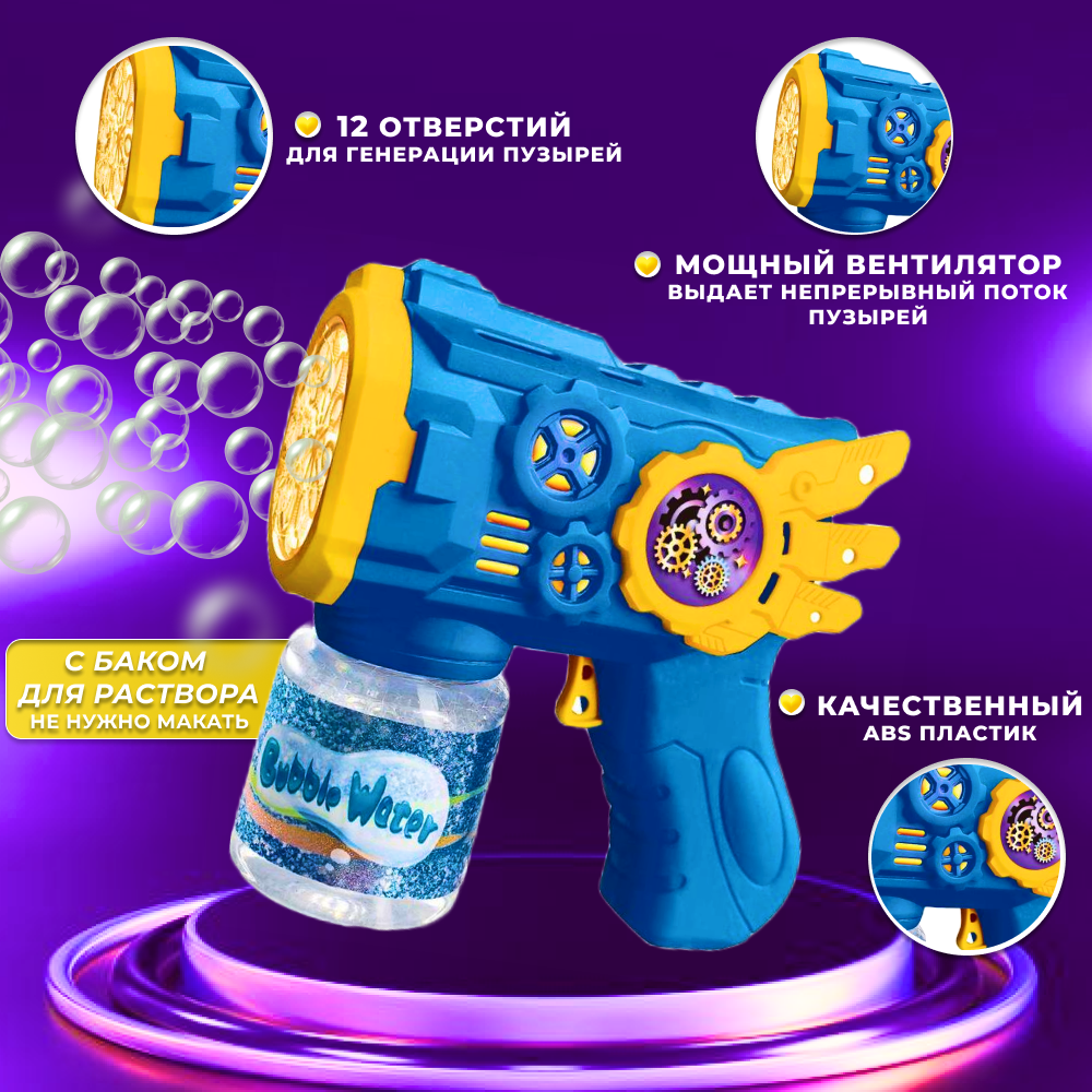 Генератор мыльных пузырей, с подсветкой / пистолет для мыльных пузырей, синий. интересное: