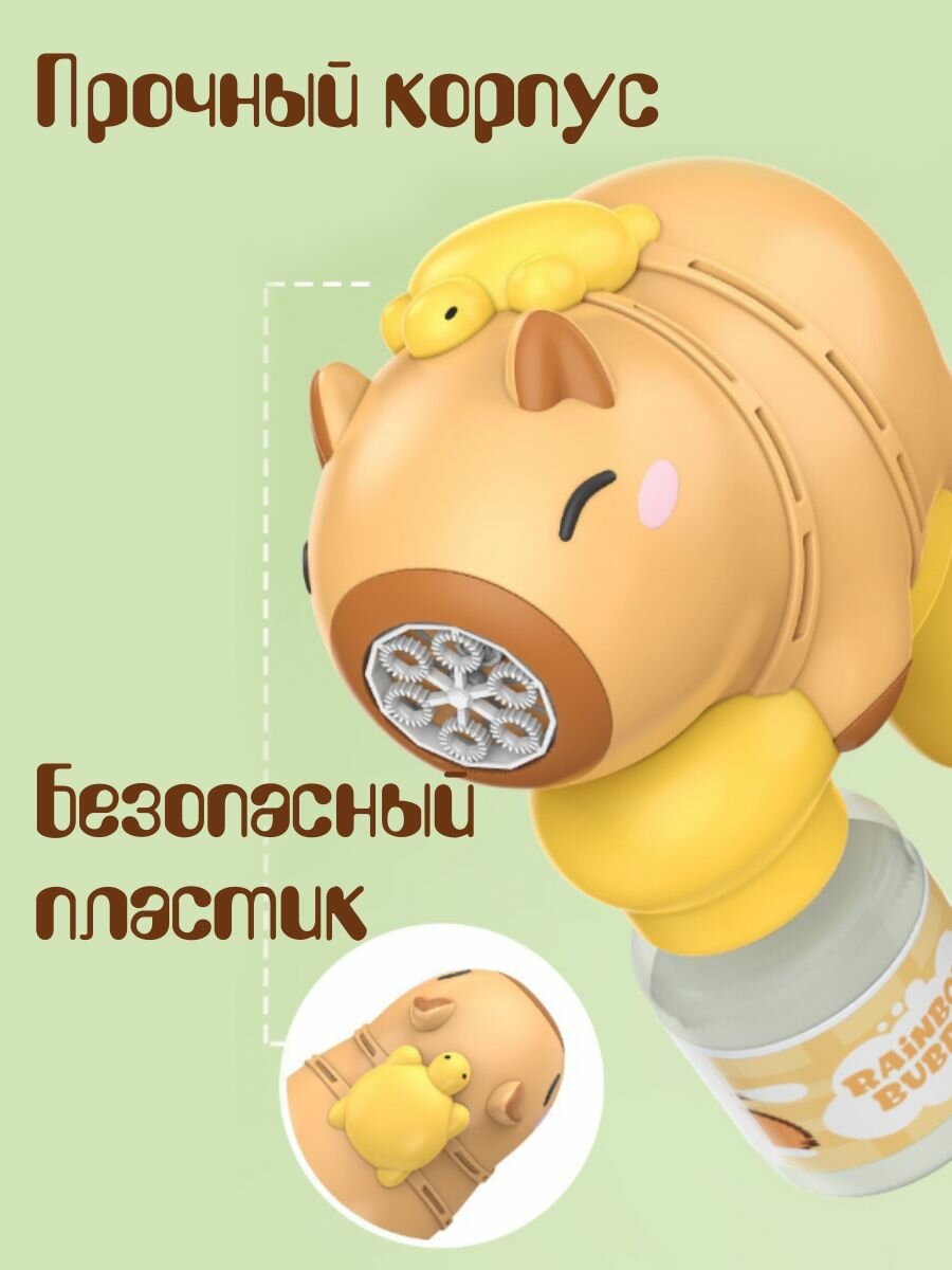 Генератор мыльных пузырей капибара, коричневый, 1 шт, раствор и батарейки в комплекте интересное: