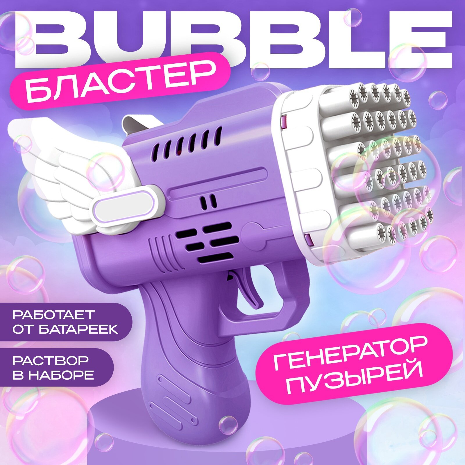 Купить Генератор мыльных пузырей "Ангел" фиолетовый 15 см, Funny toys