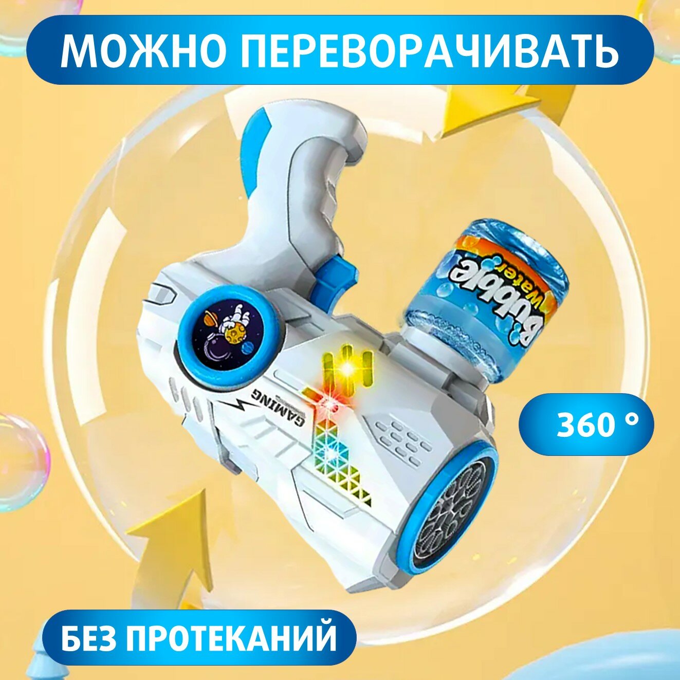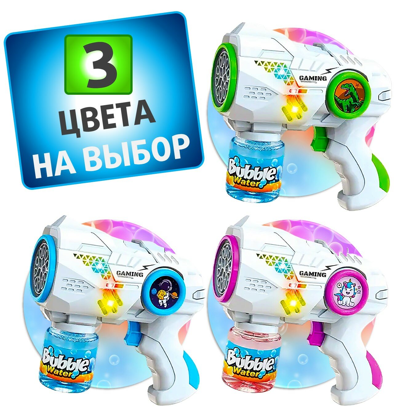 Купить Пистолет для мыльных пузырей. Генератор мыльных пузырей, с подсветкой. Мыльный пистолет