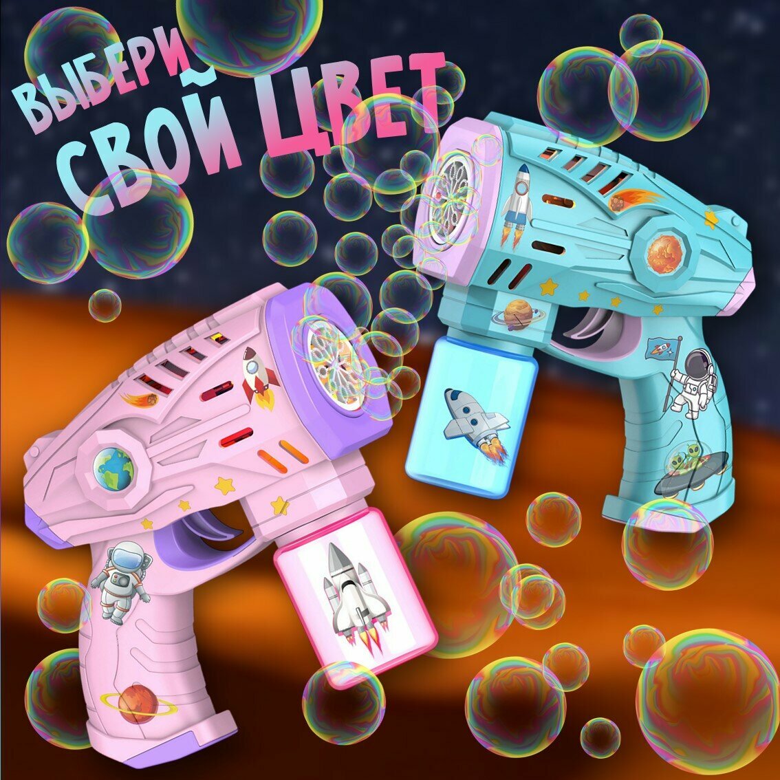 Пистолет для мыльных пузырей, с подсветкой. Генератор мыльных пузырей. Мыльный пистолет