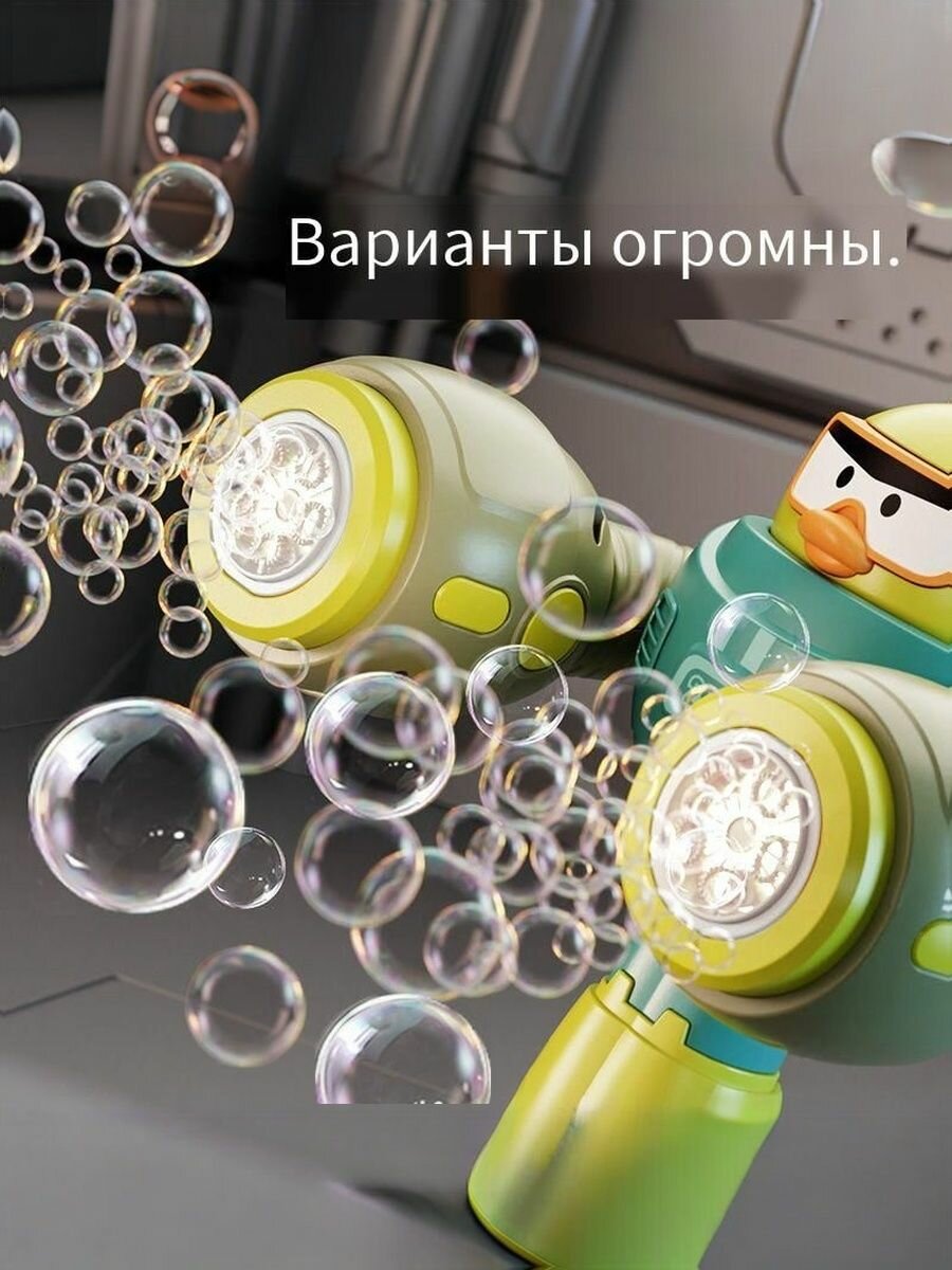Пистолет для мыльных пузырей Боевой Утка, подача воды, подсветка, от 4 лет, зеленый