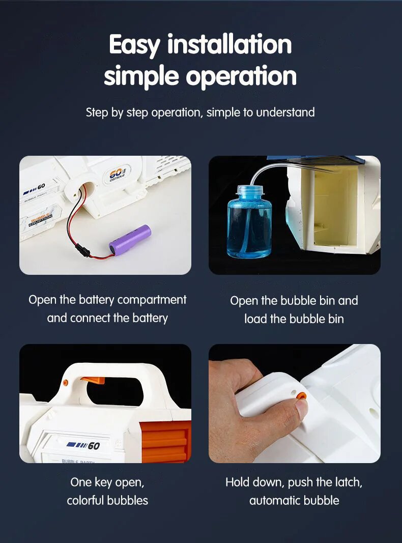 Электрический пистолет для мыльных пузырей CONUSEA, 60 отверстий, синий/оранжевый, Оранжевый интересное: