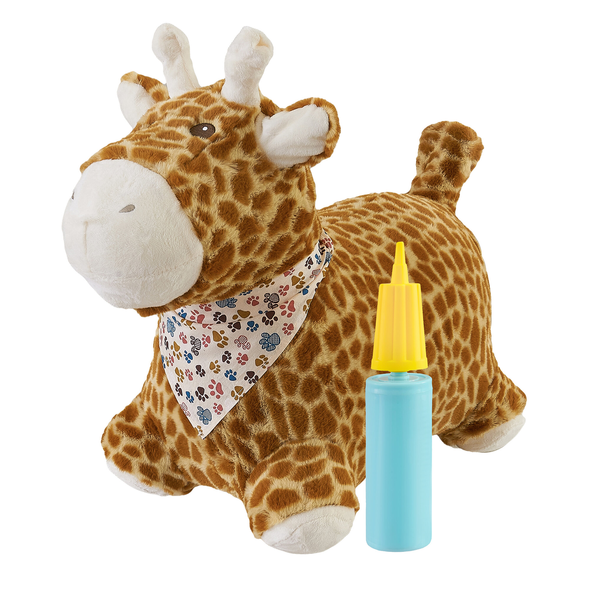Купить Прыгун Плюшевый Жираф, детская надувная развивающая игрушка-тренажер в чехле (в комплекте с насосом и платком-банданой)