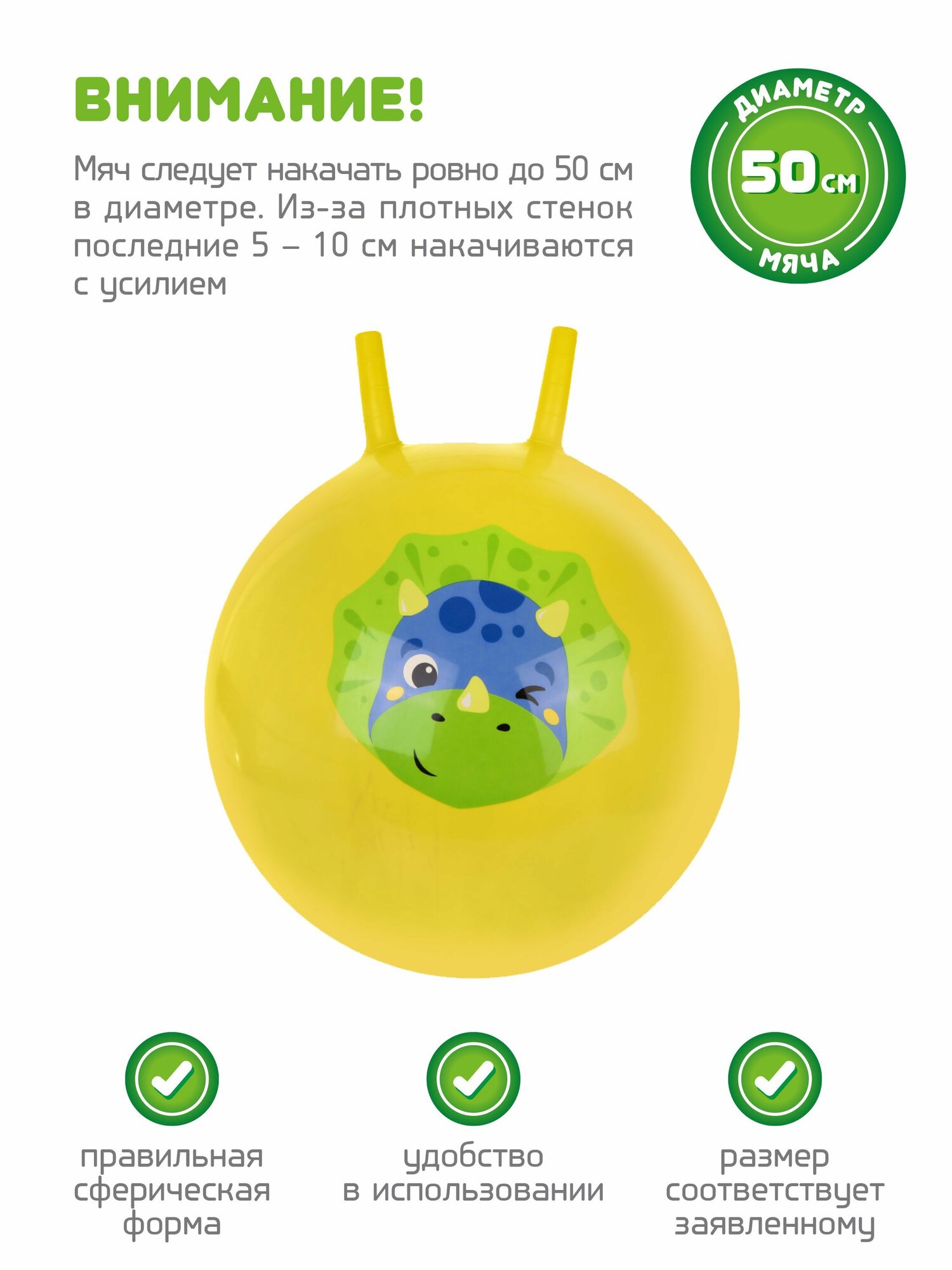 Купить Попрыгун фитбол надувной мяч с ручками Moby Kids "Динозаврик", диаметр 50 см, желтый, для детей от 3 лет