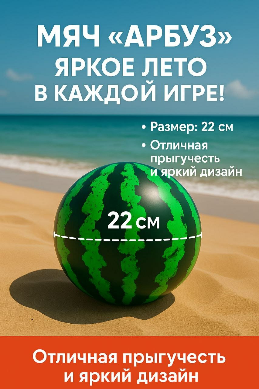 СохранитьМяч детский "Арбуз", резиновый, диаметр 22 см, для пляжа, бассейна и детской площадки интересное: